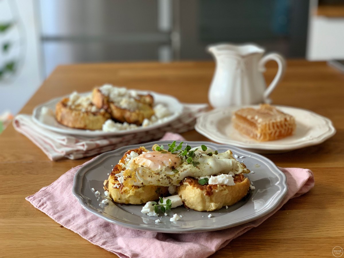 Αλμυρές αυγοφέτες με τηγανητό αυγό & φέτα