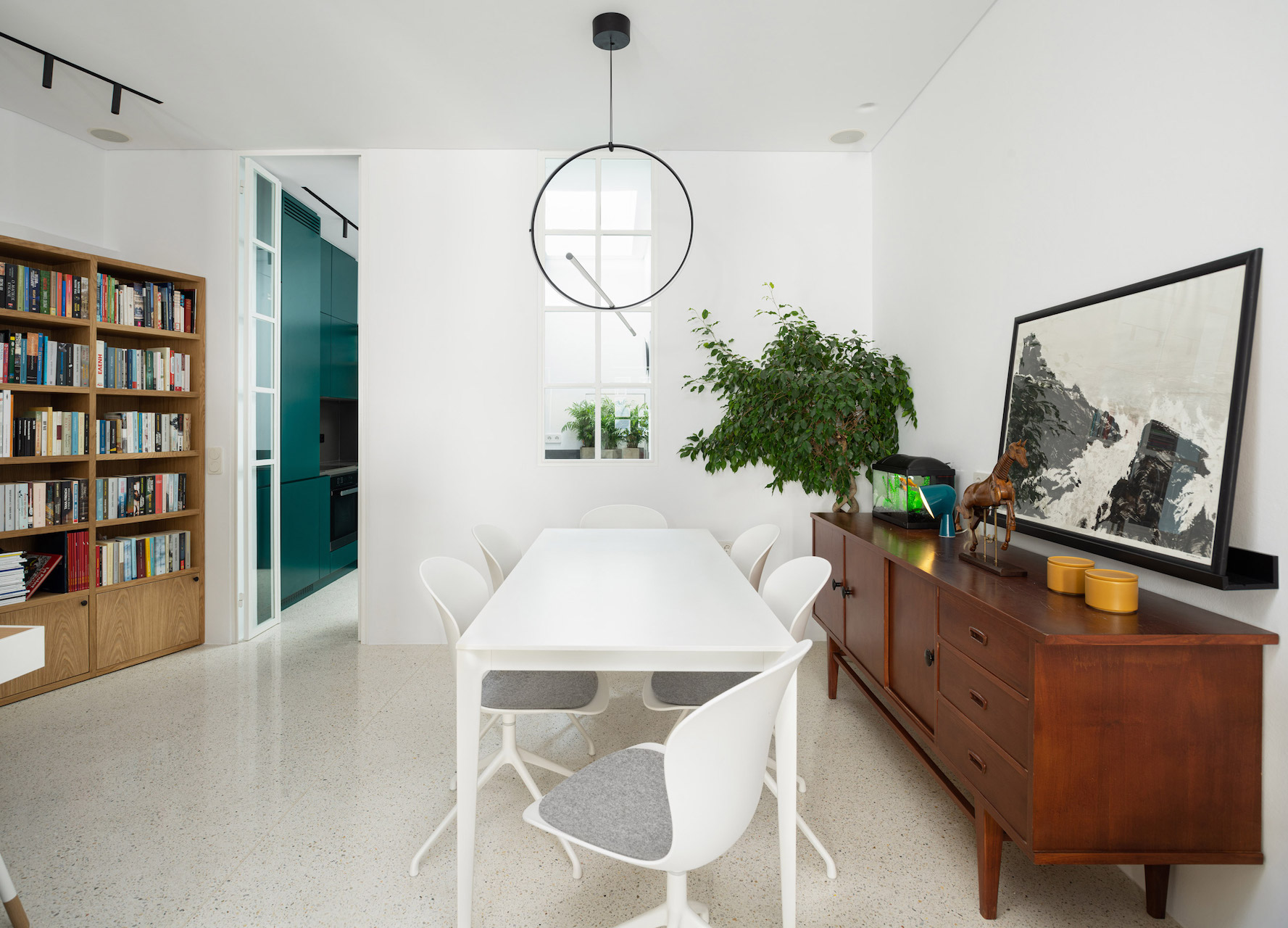 Την επίπλωση συνθέτουν πολλά μεταπολεμικά έπιπλα και φωτιστικά τα οποία «μπλέκονται» με πιο σύγχρονες επιλογές. Ξεχωρίζουν το φωτιστικό της σειράς Arrangements του Μιχάλη Αναστασιάδη για την Flos, το “Surfboard” table των Charles and Ray Eames, τα Artichair & Artitable (έπιπλα κατασκευασμένα από ένα υλικό που έχει ως βάση την αγκινάρα) του Σπύρου Κίζη.