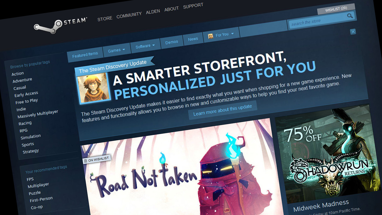 Η νέα αρχική σελίδα της υπηρεσίας λοιπόν θα περιλαμβάνει περιεχόμενο βασισμένο στην κίνηση των μελών: τα παιχνίδια που έχουν παίξει, τις βαθμολογίες τους, τις προτροπές φίλων, ακόμα και το ιστορικό των αγορών τους! Έτσι λοιπόν πρακτικά ο κόσμος παίρνει στο πιάτο περιεχόμενο (νέα παιχνίδια και DLC) που είναι πιθανότερο να τον ενδιαφέρει, την ώρα που το Steam εξασφαλίζει για την πάρτη του περισσότερες πωλήσεις –ή έστω αυξάνει την πιθανότητα αυτή. Αυτό που είναι πραγματικά όμως όλα τα λεφτά είναι ο όλος μηχανισμός: ας φανταστούμε ότι μπαίνουμε σε ένα μαγαζί που έχει ακριβώς τα πράγματα που μας ενδιαφέρουν. Όχι ότι απαραίτητα θα τα αγοράσουμε και όλα, ωστόσο οι πιθανότητες να φύγουμε με τα χέρια μας γεμάτα, αυξάνονται σημαντικά. Ε, κάτι παρόμοιο συμβαίνει και με το Steam, απλά στο πιο ψηφιακό του.