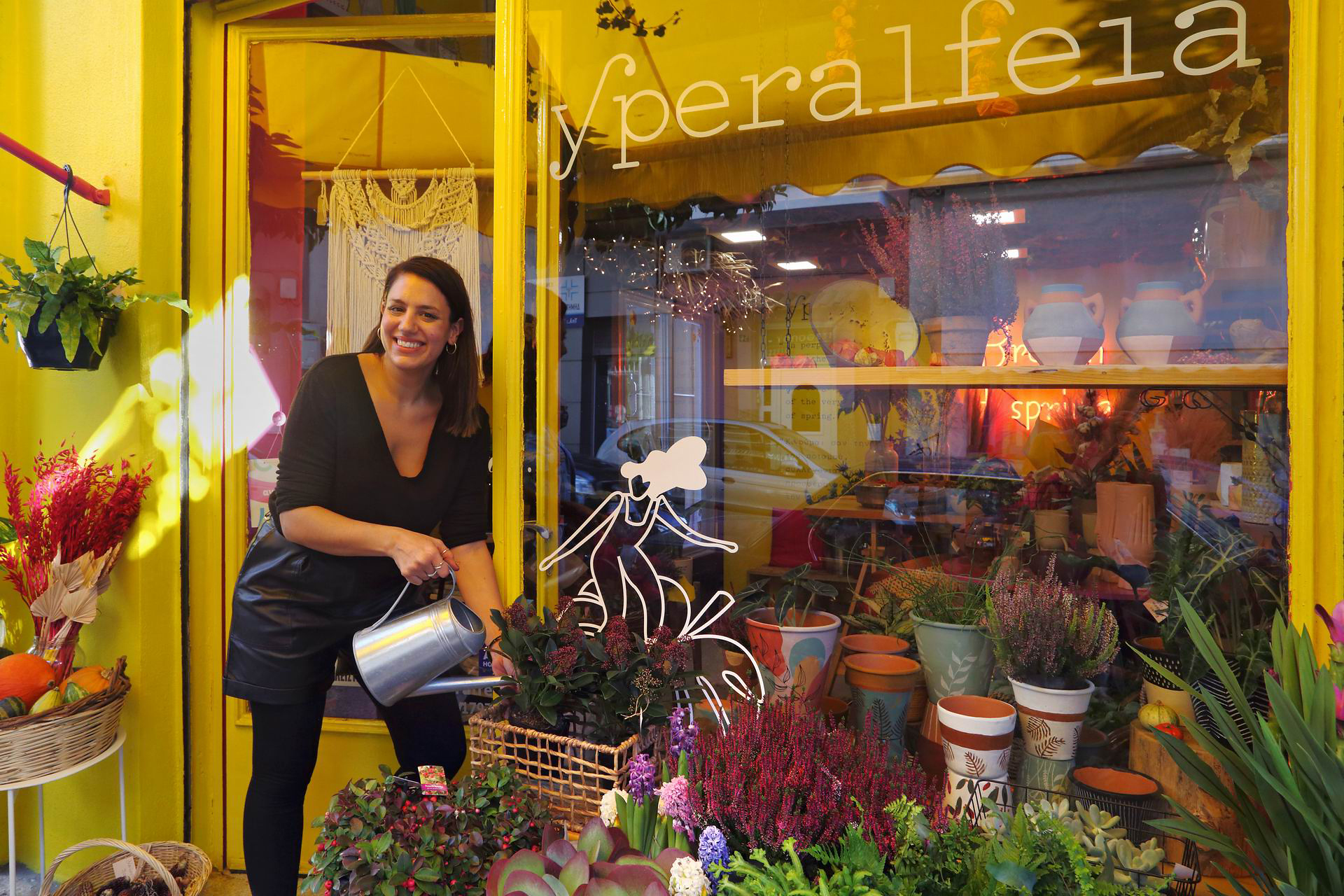 Στην οδό Κειριαδών στη γειτονιά των Κάτω Πετραλώνων, το έντονο κίτρινο χρώμα και τα neon lights του Yperalfeia υπόσχονται να σου τραβήξουν την προσοχή. Ο λιλιπούτιος χώρος της Μαρίας Παπαδοπούλου ασφυκτιά από αγάπη, λουλούδια και φυτά, που επιθυμούν να γεμίσουν τα πνευμόνια μας με οξυγόνο. Με μπόλικο μεράκι και φροντίδα, η Μαρία βρίσκεται εκεί καθημερινά για να βοηθήσει τον κάθε άνθρωπο που επισκέπτεται το μαγαζί της να έρθει σε επαφή και να αναπτύξει σχέση με τα φυτά.