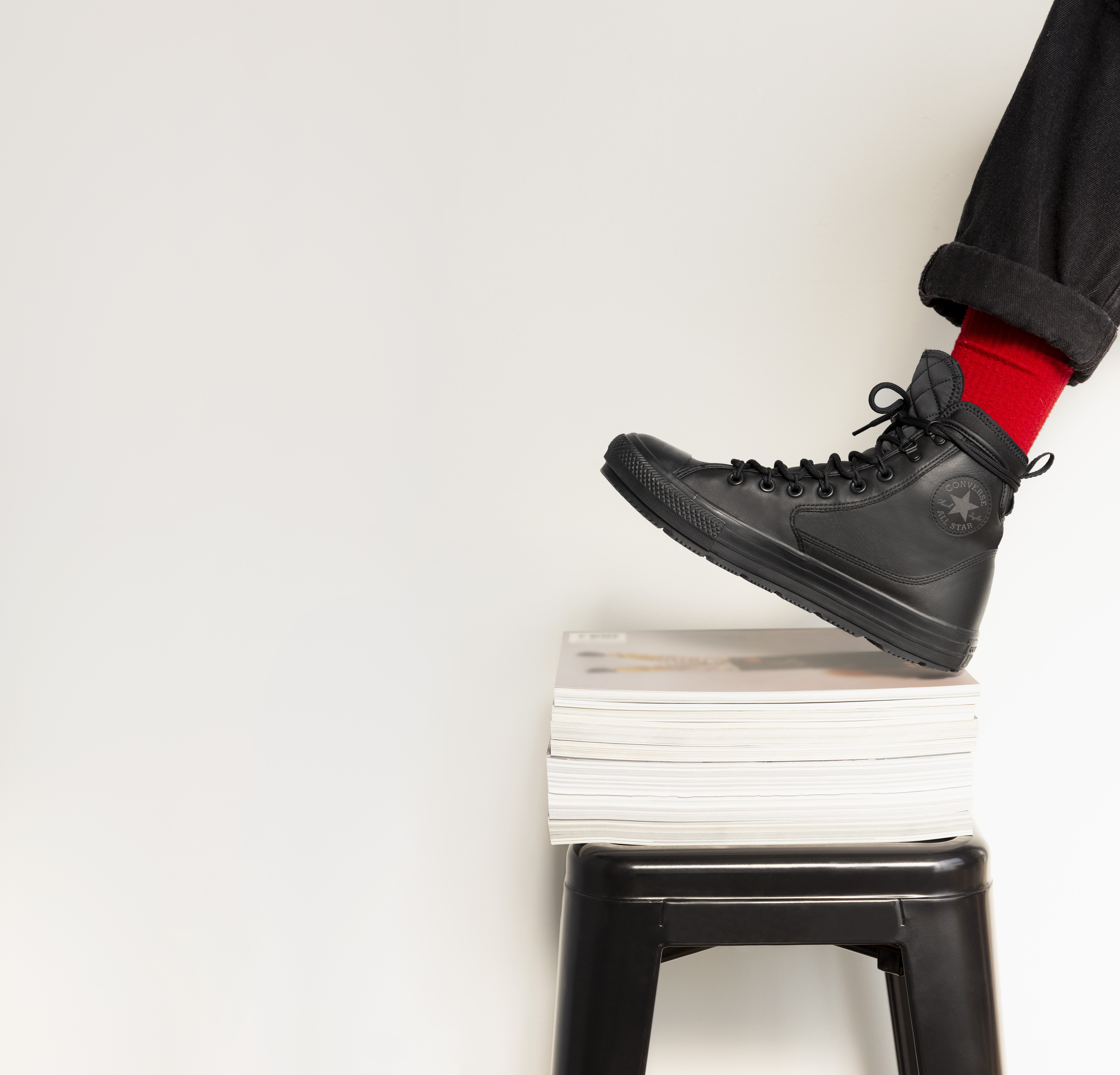 Από την άλλη τα αδιάβροχα Gore-tex μποτάκια Chuck Taylor All Star της Converse με OrthoLite σόλα, αντλούν έμπνευση από την ορειβασία. Η χαρακτηριστική τραχιά εξωτερική σόλα προσφέρει μεγάλη άνεση σε outdoor περιπέτειες και παρόλο που μοιάζουν με κλασσικά Chuck Taylor All Star, είναι φτιαγμένα από εξαιρετικά ανθεκτικό TecTuff υλικό και αδιάβροχα. Bγαίνουν σε γκρι, μαύρο και καφέ χρώμα, που σημαίνει ότι συνδυάζονται πολύ εύκολα με όλα τα χρώματα.