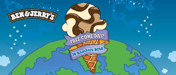 Την Τρίτη 14 Απριλίου έρχεται ξανά, για έβδομη χρονιά στην Ελλάδα, το Free Cone Day των Ben & Jerrys. Η Ημέρα Δωρεάν Παγωτού για όλους, είναι ο τρόπος που εδώ και 36 χρόνια διάλεξαν ο Βen & o Jerry για να λένε ένα μεγάλο ευχαριστώ στους φίλους των παγωτών τους.