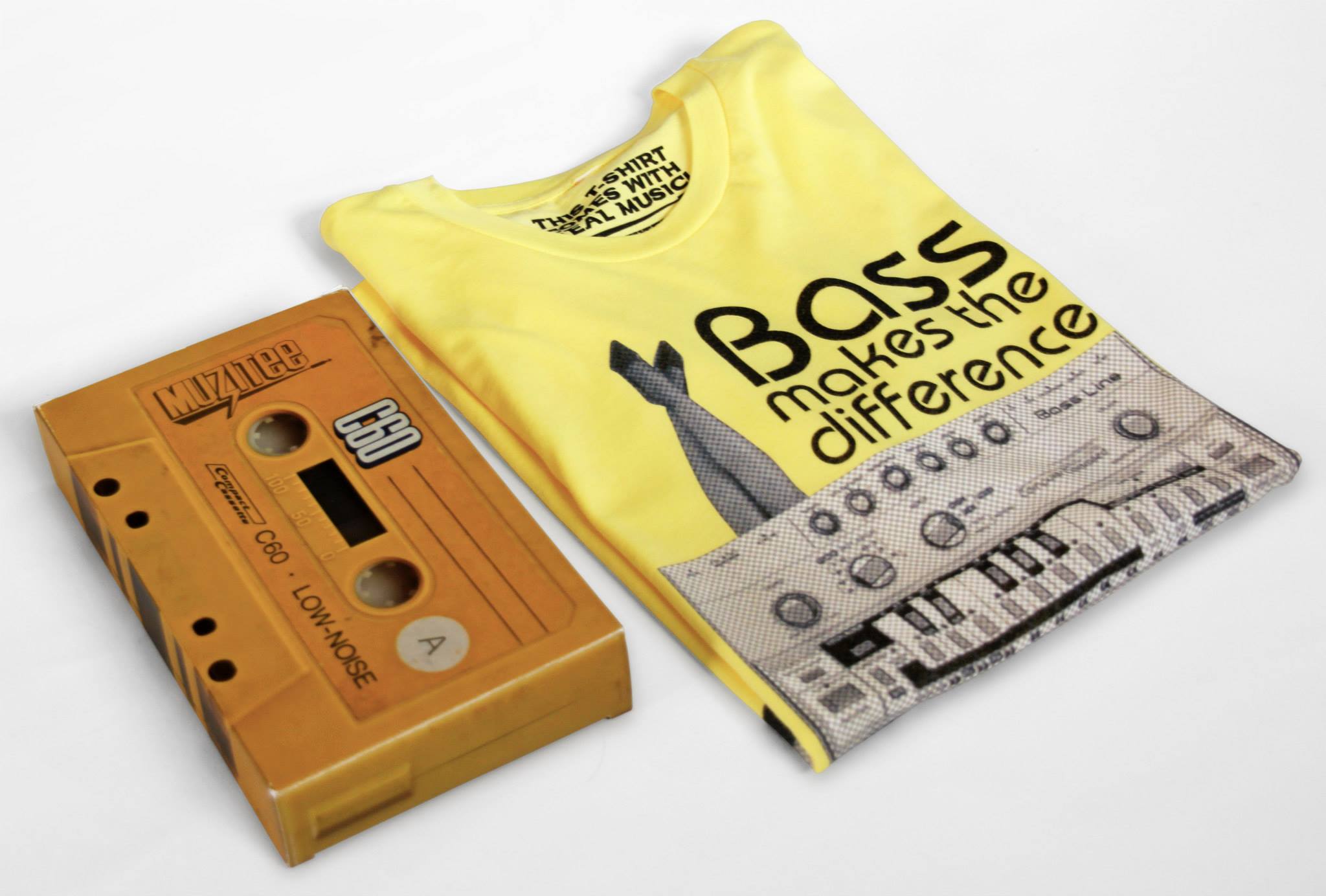 «Σκέφτηκα ότι μία κασέτα θα μπορούσε να λειτουργήσει στη συνέχεια και ως διακοσμητικό στο χώρο ενός ανθρώπου που είναι εραστής της μουσικής. Ήθελα μία κασέτα από τις παλιές – εκείνες του 80, όχι τις διάφανες του 90, και βρήκα μία ωραία κίτρινη από τη συλλογή της μητέρας μου από την εποχή που ήταν φοιτήτρια. Έγραφε απ’ έξω “Νταλάρας – Αλεξίου” από τη μία πλευρά και από την άλλη “διάφορα”. Άραγε είχε διάφορα άλλων καλλιτεχνών ή διάφορα από Νταλάρα και Αλεξίου; Δεν ξέρω. Τη φωτογράφισα απ’ όλες τις πλευρές και μετά πήγα το υλικό σε μία εταιρία που κατασκευάζει κουτιά και μου το έφτιαξαν. Πραγματικά βγήκε καλύτερο απ’ ό,τι περίμενα και δείχνει να έχει γίνει το χαρακτηριστικό “αλατοπίπερο” κάθε Muzitee t-shirt». Προσυπογράφω.