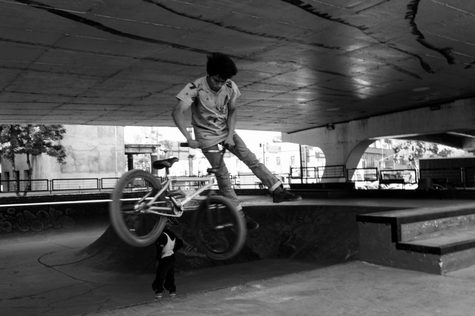 Το συγκεκριμένο πάρκο βρίσκεται κάτω από μια γέφυρα μεγάλου αυτοκινητόδρομου και τοποθετημένο στο κέντρο της, ενώ η κίνηση των οχημάτων από πάνω κι από το πλάι είναι τρομακτική, αυτοκίνητα, μοτοσικλέτες, ποδήλατα, φορτηγά,  απίστευτος ο θόρυβος στ’ αυτιά σου..