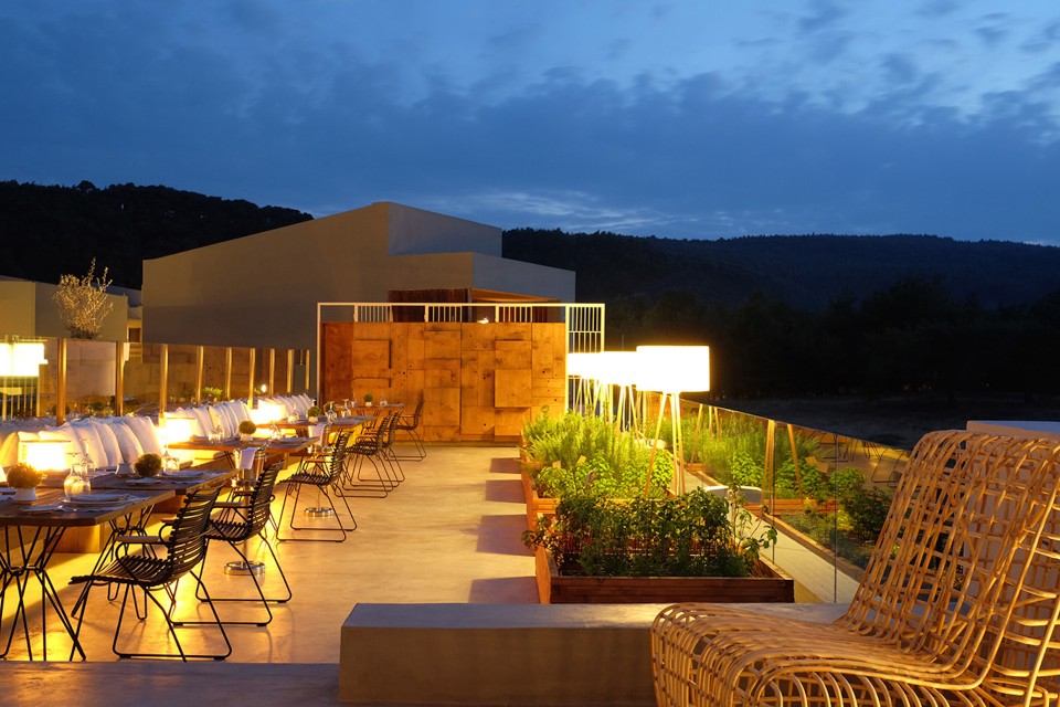 Η αρχιτεκτονική είναι σε άμεση σχέση με τις κλιματολογικές συνθήκες που επικρατούν σε κάθε τόπο; Εν προκειμένω, σε αυτό το ξενοδοχείο τι έπρεπε να λάβετε υπ’ όψη; Η αρχιτεκτονική (οφείλει να) έχει άμεση σχέση με τον τόπο που τη φιλοξενεί. Το περιβάλλον και οι ανάγκες-επιθυμίες που εξυπηρετεί ένα κτίριο δεν είναι στατικές, γιατί να είναι αυτό; Ο αέρας, το φως, οι μυρωδιές της φύσης διαπερνούν το κτίριο και εναλλάσσονται συνεχώς μέσα στην ημέρα, μέσα στο έτος. Φανταστείτε να μένετε σε ένα σπίτι πάνω στη θάλασσα αλλά λόγω του προσανατολισμού των ανοιγμάτων του και της έλλειψης ορθού σχεδιασμού να μην μπορείτε να την απολαύσετε; Δεν είναι κρίμα; Αντίστοιχα, φανταστείτε να είστε στο γυμνό ηλιοκαμμένο τοπίο μιας ερήμου με μεγάλα ανοίγματα χωρίς καθόλου ηλιοπροστασία. Θα σας ήταν ευχάριστος ο χώρος αυτός; Η ουσία του σχεδιασμού βρίσκεται στη χρυσή τομή μεταξύ των κλιματολογικών συνθηκών, της τοποθεσίας, των αναγκών του χρήστη και της αισθητικής. Γι’ αυτό η αρχιτεκτονική είναι δύσκολη. Το Thalatta Seaside Hotel ακροβατεί προνομιακά μεταξύ του επιβλητικού πευκοδάσους της Αγίας Άννας και της ανοικτής θάλασσας του Αιγαίου. Επομένως, από την αρχή ήταν ζητούμενο και προϋπόθεση να συνδιαλέγεται με αυτά τα έντονα φυσικά στοιχεία. Και ακριβώς αυτό αποτέλεσε το έναυσμα για την κεντρική ιδέα της αρχιτεκτονικής σύνθεσης. Ο κύριος άξονας κίνησης που οδηγεί τον φιλοξενούμενο από τους κοινόχρηστους χώρους στο δωμάτιο του, είναι ο ίδιος που ενώνει τη θάλασσα με το δάσος. Αντίστοιχα, τα κτίρια των δωματίων έχουν τοποθετηθεί σε γωνία 45 μοιρών σε σχέση με αυτόν, έτσι ώστε να παρέχουν ανεμπόδιστη θέα με απόλυτη ιδιωτικότητα.