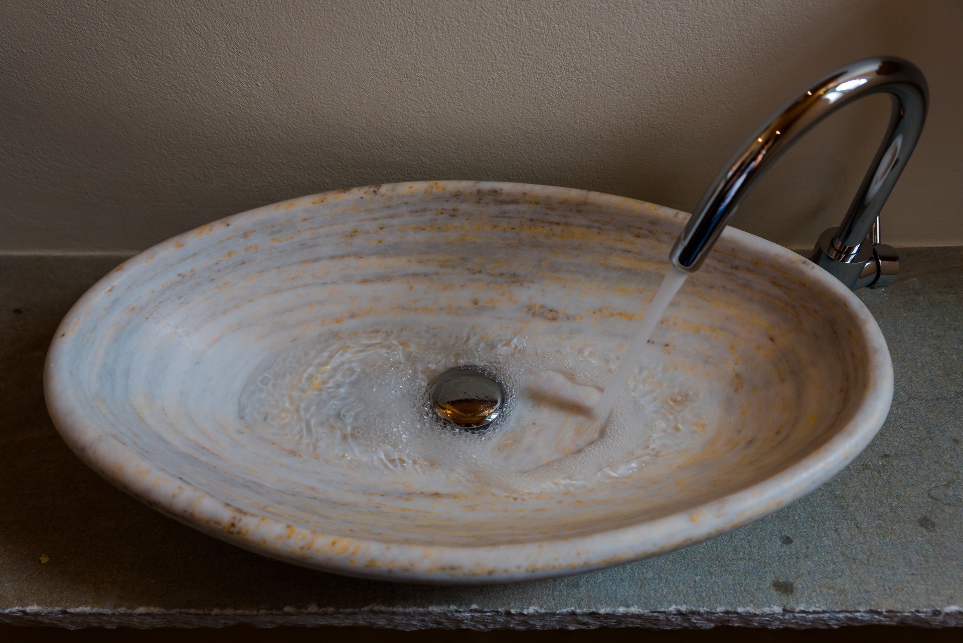 Τα μαρμάρινα υπέρθυρα και ο μαρμάρινος νεροχύτης στο λουτρό κατασκευάστηκαν επίσης από ντόπιο μαρμαροτεχνίτη. Η κλειδαριά, οι σιδερένιοι μεντεσέδες, τα σιδερένια κρεμαστάρια και άλλα εξαρτήματα του μπάνιου σχεδιάστηκαν από το γραφείο και κατασκευάστηκαν στο καμίνι από τηνιακό σιδερά.