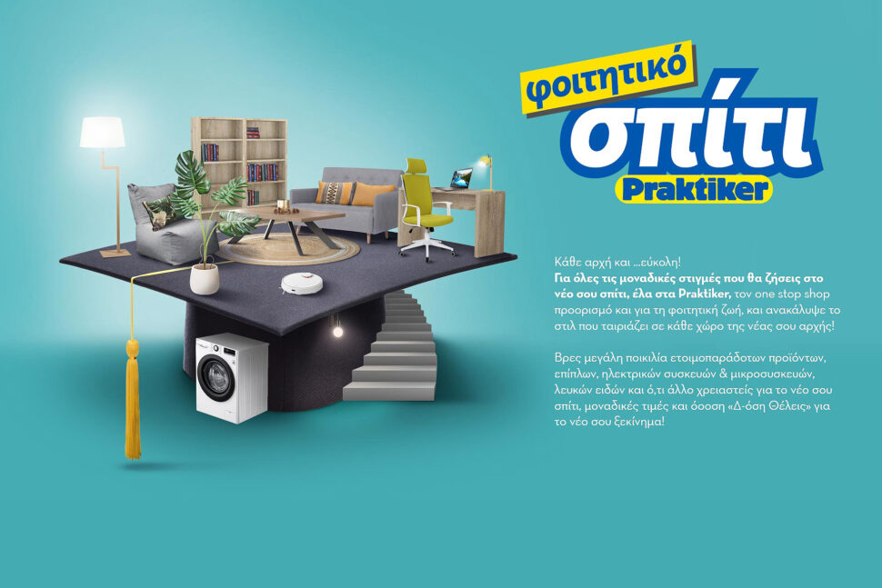 Δεν χρειάζεται να αγχώνεσαι άλλο αφού η Praktiker Hellas, το No. 1 ελληνικό δίκτυο καταστημάτων Home Improvement & DIY, έχει φροντίσει να κάνει τη ζωή σου πιο εύκολη και διασκεδαστική. Πώς; Με μία ολοκληρωμένη προϊοντική σειρά στην οποία μπορείς να βρεις τα πάντα για το φοιτητικό σπίτι αλλά και την checklist που θα σου λύσει τα χέρια.