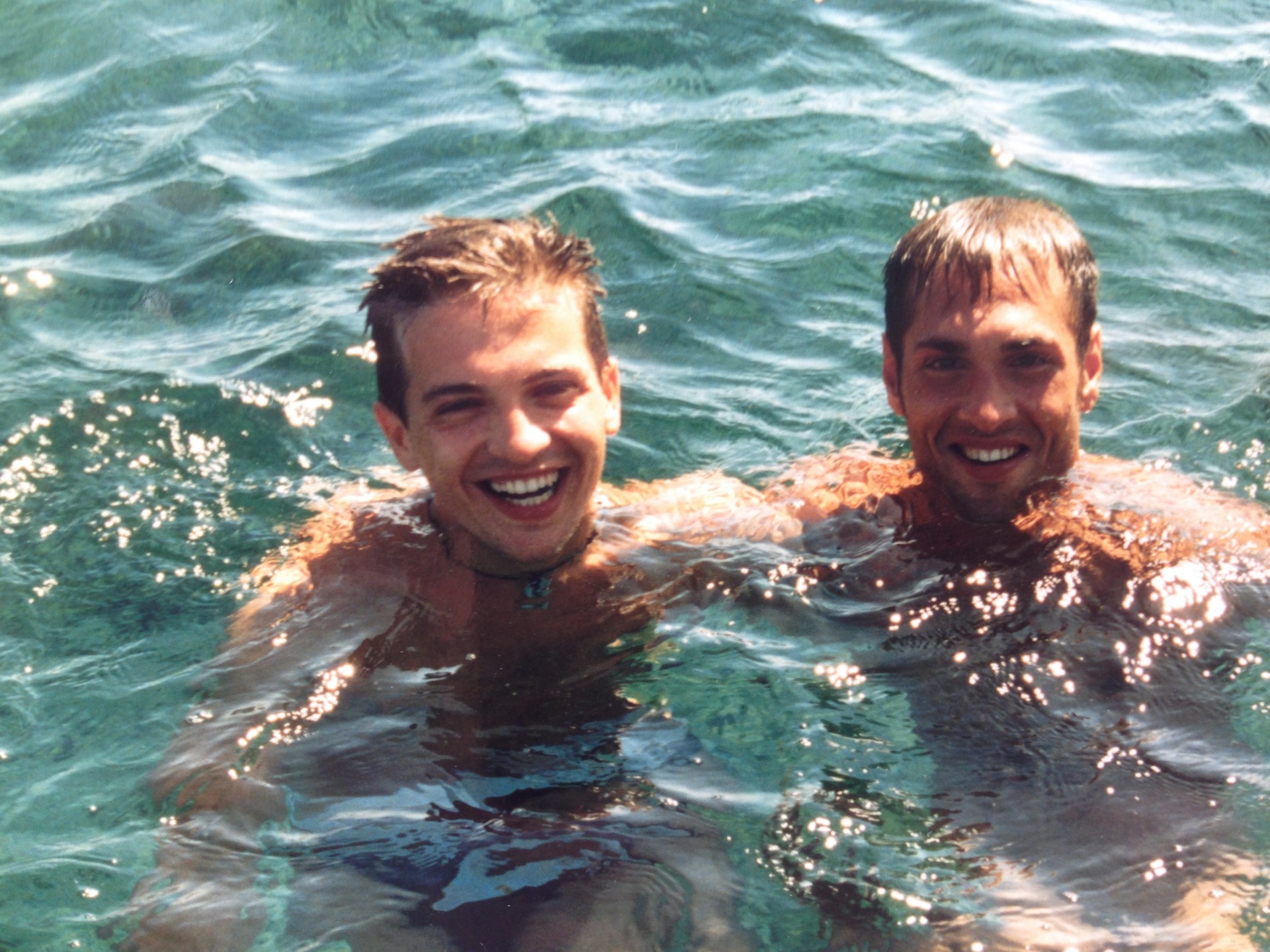 Μια φωτογραφία που μου θυμίζει πολλά είναι με τον αδερφικό μου φίλο Νικήτα στα βράχια της Λίνδου το 1996 που μας έβγαλε με την φωτογραφική μου μηχανή ένας περαστικός τουρίστας τον οποίο σταματήσαμε και παρακαλέσαμε να μας φωτογραφίσει. Ο καημένος έψαχνε μια ώρα να βρει την κάμερα μέσα στις τσάντες, δεν καταλάβαινε λέξη Αγγλικά για να καταλάβει πως δουλεύει, και εμείς από τα γέλια πήγαμε να πνιγούμε.