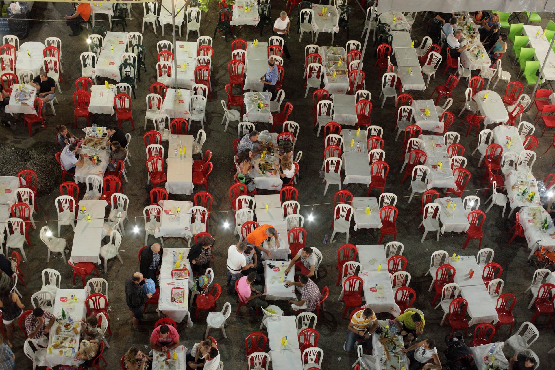 Η μυρωδιά του ψημένου κρέατος, μαζί με τα φωτορυθμικά και την αλλοπρόσαλλη μουσική υπόκρουση, συνθέτουν μια μεθυσμένη εικόνα ελληνικής επαρχίας λίγο πριν το τέλος της θερινής ραστώνης.