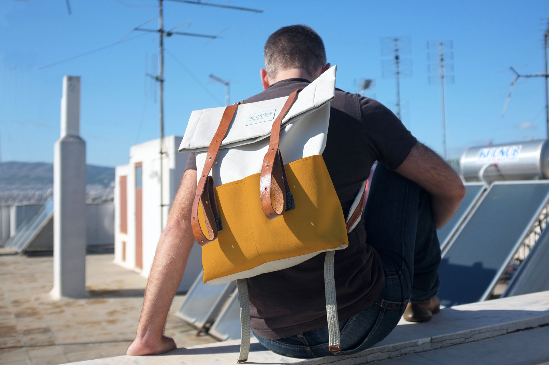Ας υποθέσουμε ότι περπατάτε στην πόλη. Κοιτάξτε ψηλά. Τι βλέπετε; Ένα από τα κυριότερα χαρακτηριστικά του αθηναϊκού, αστικού τοπίου, είναι οι τέντες που «στολίζουν» τις άχαρες πολυκατοικίες μας. Πράσινες, μπλε, μερικές φορές και πορτοκάλι. Τις γιορτάσαμε στα late 60’s και στα 70’s. Μας έκοψαν τον ήλιο τα πολύ ζεστά μεσημέρια του Αυγούστου, όταν θέλαμε να απολαύσουμε μια φέτα καρπούζι στο μπαλκόνι. Τις αποδομήσαμε ως κιτς και σπεύσαμε να αντικαταστήσουμε τα ζωντανά χρώματά τους με άχαρα μπεζ. Ξαναλατρέψαμε όσες στάθηκαν αγέρωχες στο χρόνο, γιατί κάνουν καλές Instagram ευκαιρίες. Υπάρχει βέβαια και η αθέατη πλευρά της τέντας. Τα φλοράλ σχέδια που απολαμβάνει ένας Αθηναίος, μόνος, στο μπαλκόνι του. Ε, λοιπόν, τώρα αυτή την πλευρά της τέντας, μπορείς να την έχεις στους ώμους σου και στα χέρια σου, γιατί οι τσάντες 3QUARTERS, είναι φτιαγμένες από τεντόπανα που αποκήρυξε κάπου, κάποτε μια συνέλευση ενοίκων μιας πολυκατοικίας.