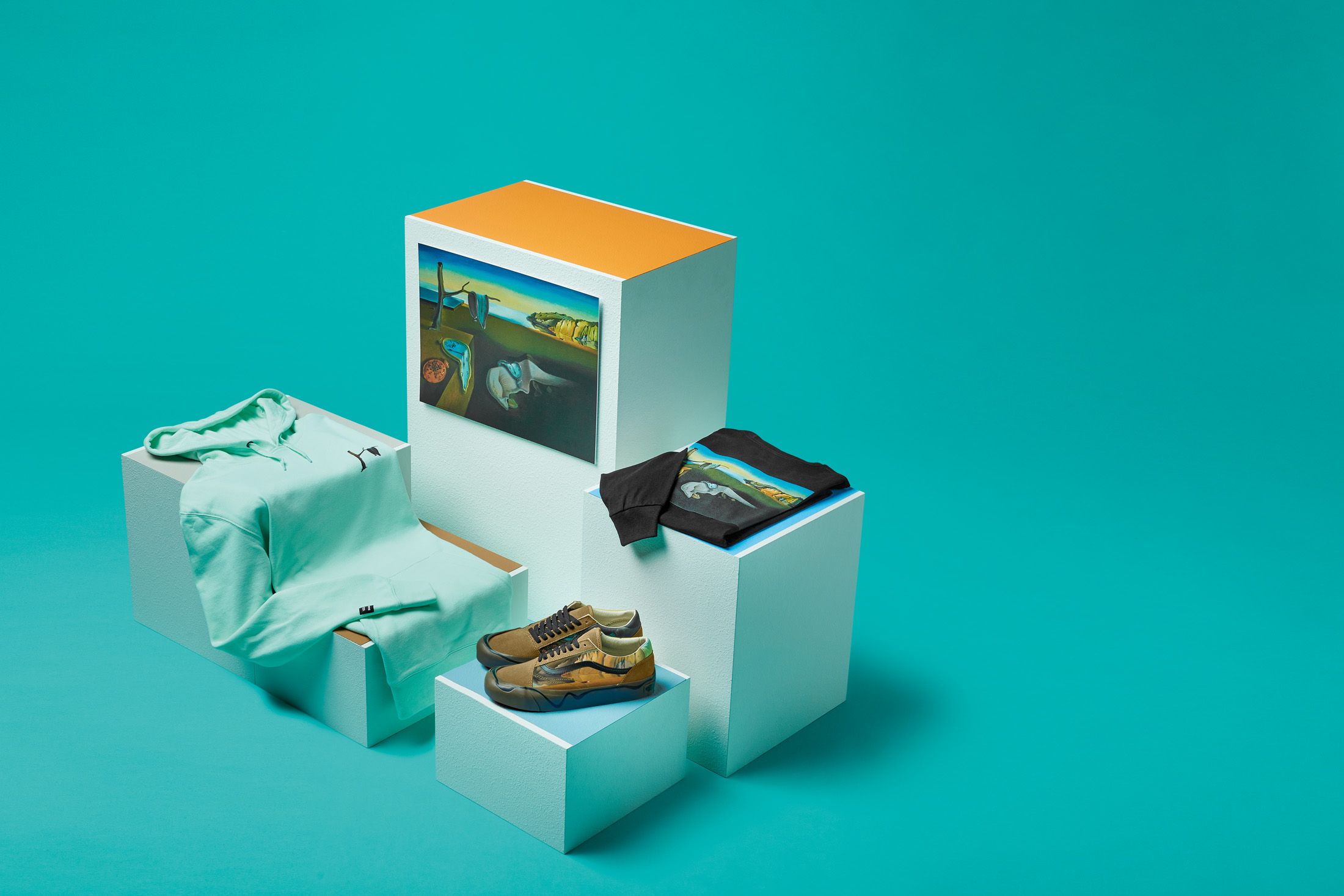 Ο Salvador Dalí εμπνεόταν από το υποσυνείδητο, τα όνειρα και τη φαντασία δημιουργώντας σουρεαλιστικά έργα που μπλέκουν το αληθινό με το φανταστικό. Ένα από τα πιο αναγνωρίσιμα έργα του ‘The Persistence of Memory. 1931’ έχει αποτυπωθεί στο πάνω μέρος και στα πλαϊνά του μοντέλου Vans Old Skool Twist. Η κατασκευή του μοντέλου αλλάζει ώστε να ξεπερνάει την αντίληψη της πραγματικότητας και τελειοποιείται με μια σόλα από γόμα και μια χαρακτηριστική παραμορφωμένη γραμμή που χρησιμοποιείται επίσης στο Vans long sleeve και το pullover της συλλογής.