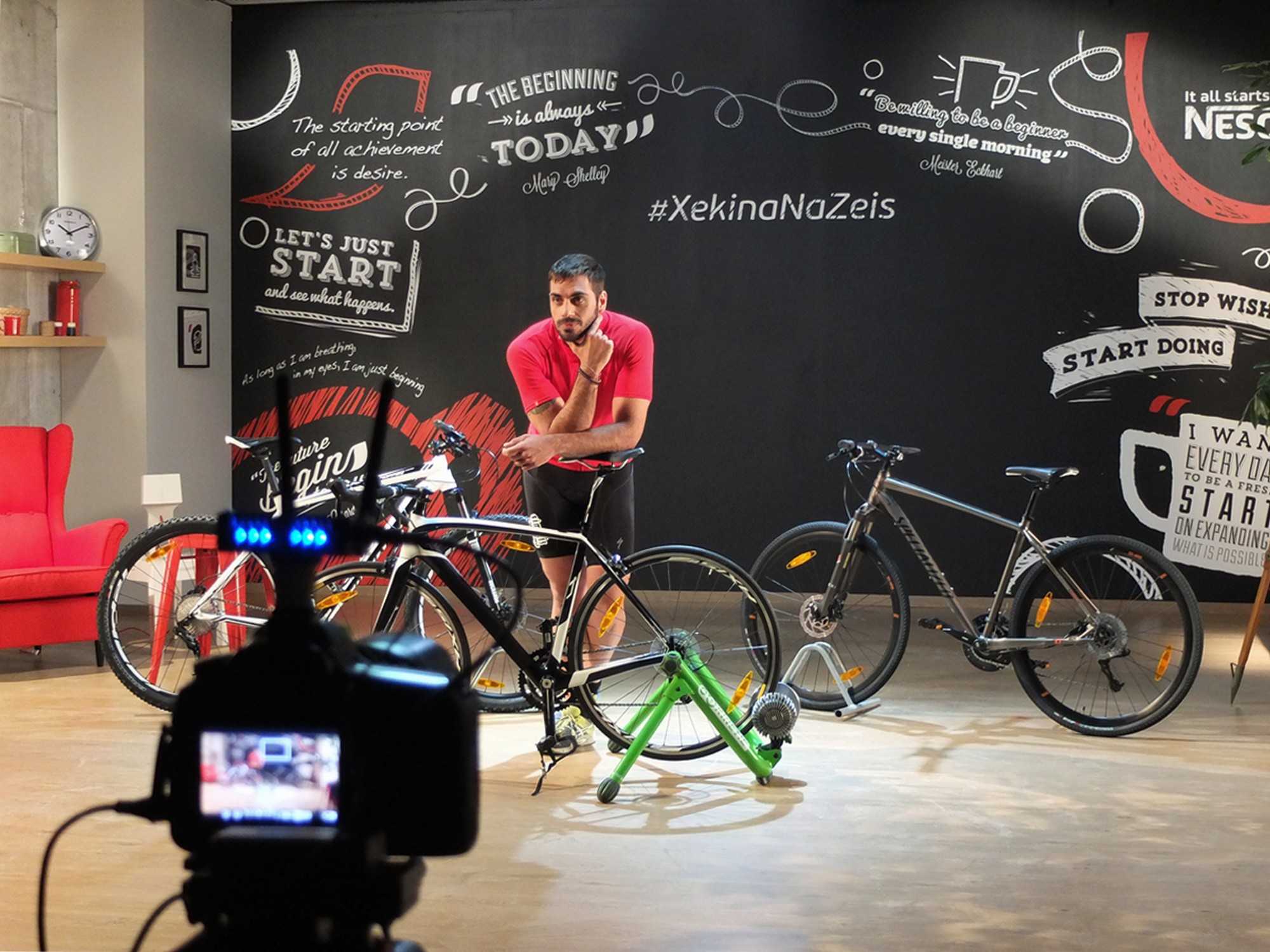 Ο instructor είναι έτοιμος να απαντήσει σε κάθε απορία σας μέσα από σχόλια και ερωτήσεις στο www.nescafeforstarters.gr. Μέσα από ένα surfάρισμα στην σελίδα και έπειτα από μερικά μαθήματα θα είστε έτοιμοι να αποφύγετε κάθε εμπόδιο και να απολαύσετε μια λαμπερή ημέρα σαν τη σημερινή. Άντε τι κάθεστε;! Ξεκινήστε ετοιμάζοντας έναν απολαυστικό καφέ Νescafé, παρακολουθήστε τα εκπαιδευτικά video των καθηγητών και είστε πανέτοιμοι για μια μεγάλη ποδηλατοβόλτα. Εγώθασυνεχίσωμε yoga. Εσείς;