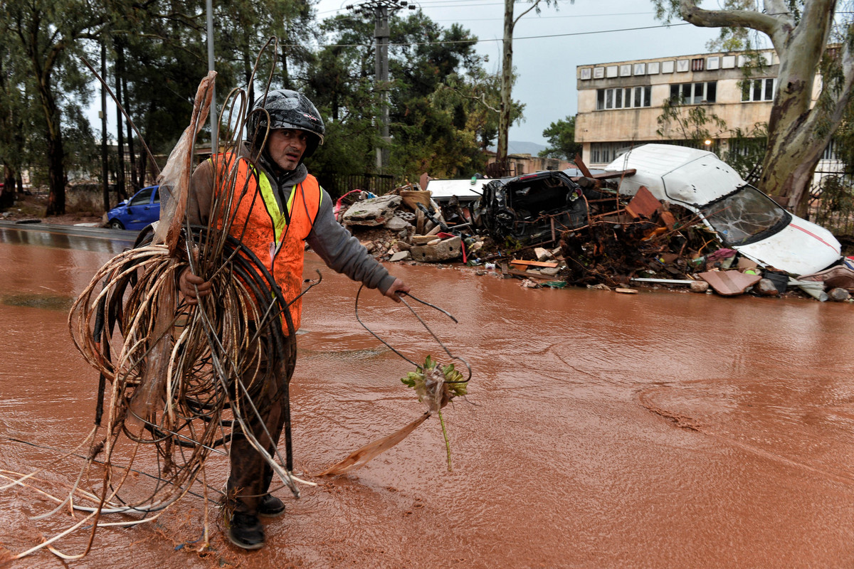 ÊÜôïéêïò ðåñðáôÜåé óôï äñüìï êñáôþíôáò äéÜöïñá áíôéêåßìåíá óôï êÝíôñï ôçò ÌÜíäñáò, ÁôôéêÞò, ÐÝìðôç 16 Íïåìâñßïõ 2017, ìåôÜ ôéò êáôáññáêôþäåéò âñï÷Ýò ðïõ Ýðëçîáí ÷èåò ôçí ðåñéï÷Þ. Ôïõò 16 Ý÷ïõí öôÜóåé ïé íåêñïß êáé ðÝíôå áêüìá Üíèñùðïé áãíïïýíôáé åíþ ìåãÜëåò åßíáé ïé êáôáóôñïöÝò óå óðßôéá, êáôáóôÞìáôá êáé ðåñéïõóßåò áðü ôéò ÷èåóéíÝò ðëçììýñåò óôç ÌÜíäñá, ôá ÌÝãáñá êáé ôç ÍÝá ÐÝñáìï óôçí ÁôôéêÞ. ÁÐÅ ÌÐÅ/ÁÐÅ ÌÐÅ/ÂÁÓÉËÇÓ ØÙÌÁÓ