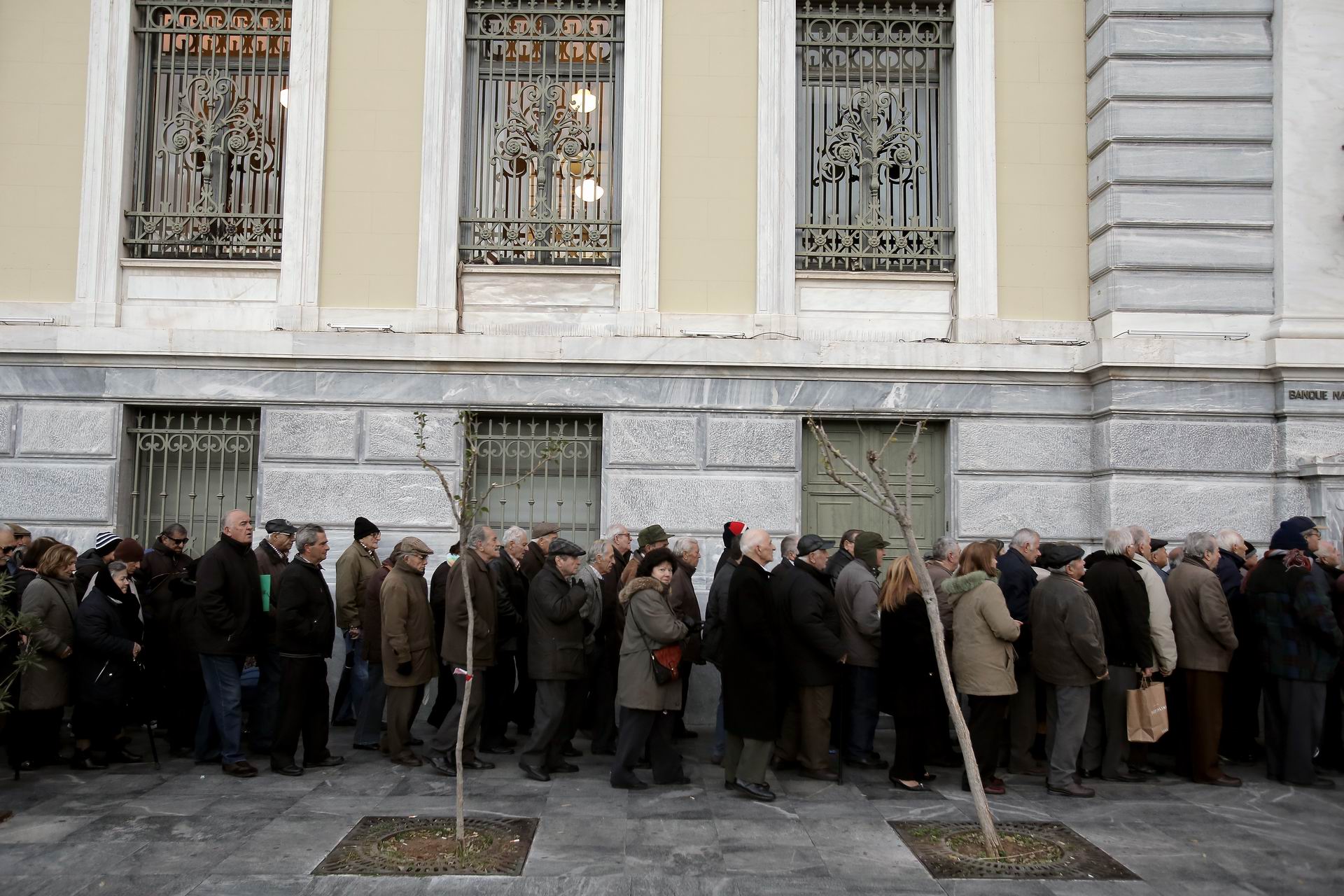 Πέμπτη 22 Δεκεμβρίου: Συνταξιούχοι περιμένουν στην ουρά μπροστά από υποκατάστημα της Εθνικής τράπεζας στην Πλατεία Κοτζιά, για να εισπράξουν το έκτακτο Χριστουγεννιάτικο επίδομα.