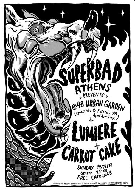 Σε ένα παράλληλο και λίγο πιο οργανικό μουσικό σύμπαν, οι “φρέσκοι” Carrot Cake, από το τέλος του ’15 μέχρι τις αρχές του ‘17 έγραφαν το δεύτερο επεισόδιο των δικών τους post jazz “Εthics”. Σε συνέχεια σειράς επιτυχημένων live εμφανίσεων, πλαισιώνουν το line up της βραδιάς δημιουργώντας την ιδανική διπλή συναυλία.