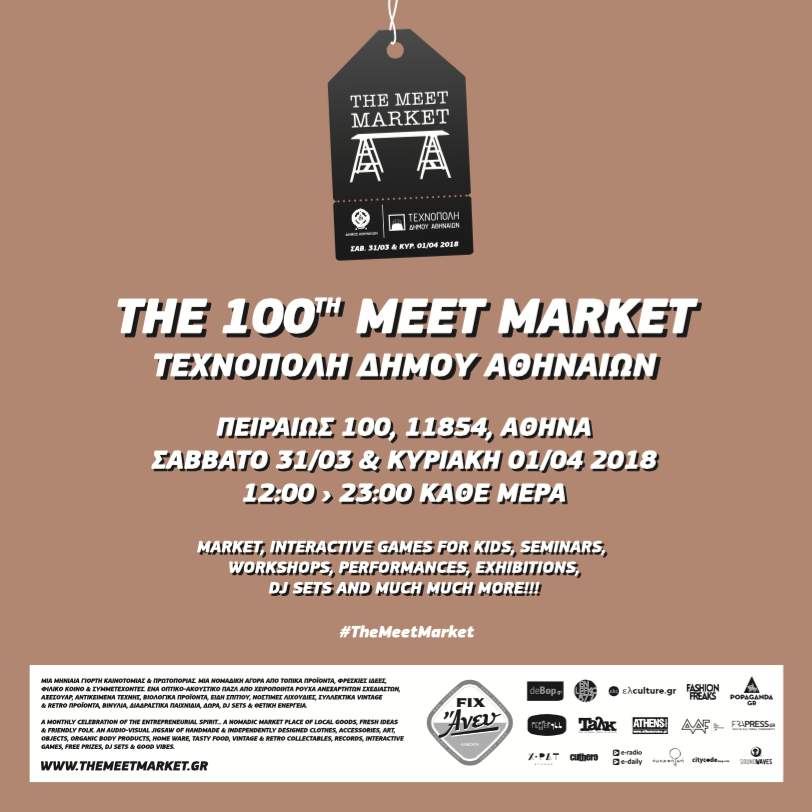 Kαι να, που ο καιρός πέρασε και δεν καταλάβαμε πώς φτάσαμε στο 100ο Meet Μarket!Για αυτό το λόγο, λοιπόν, ετοιμάζουμε κάτι έξτρα σπέσιαλ και για να μείνει αξέχαστο θα καταλάβουμε ΟΛΟΚΛΗΡΗ την Τεχνόπολη Δήμου Αθηνών!