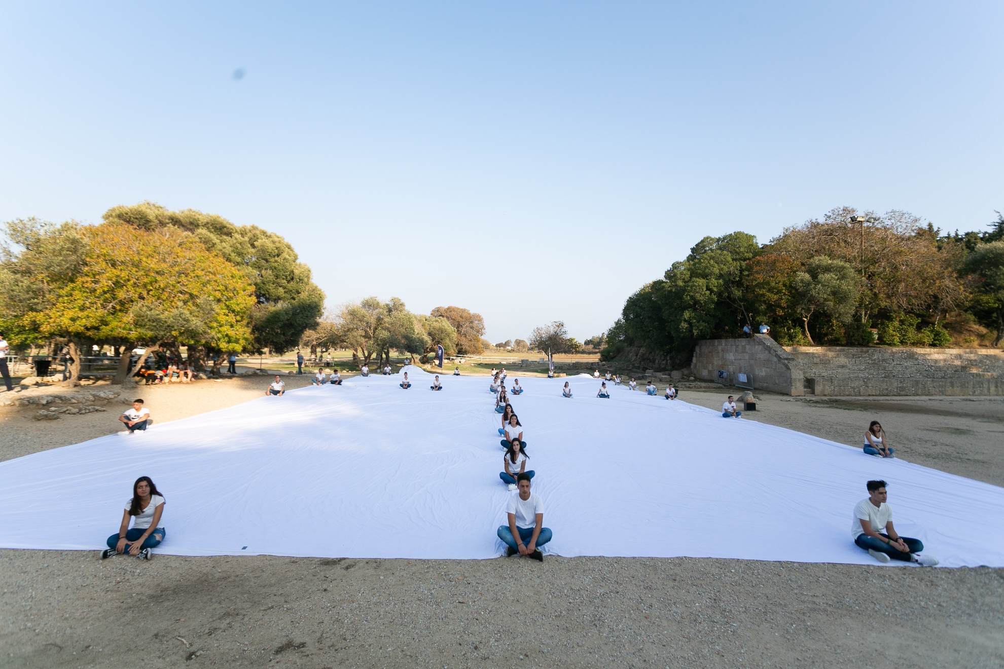 Συλλεκτική #WhiteCard φωτογραφία με τους επιφανείς συμμετέχοντες στο Αρχαίο Θέατρο της Ρόδου, ως ένδειξη της δέσμευσής τους προς την υποστήριξη της ειρήνης μέσω του αθλητισμού.