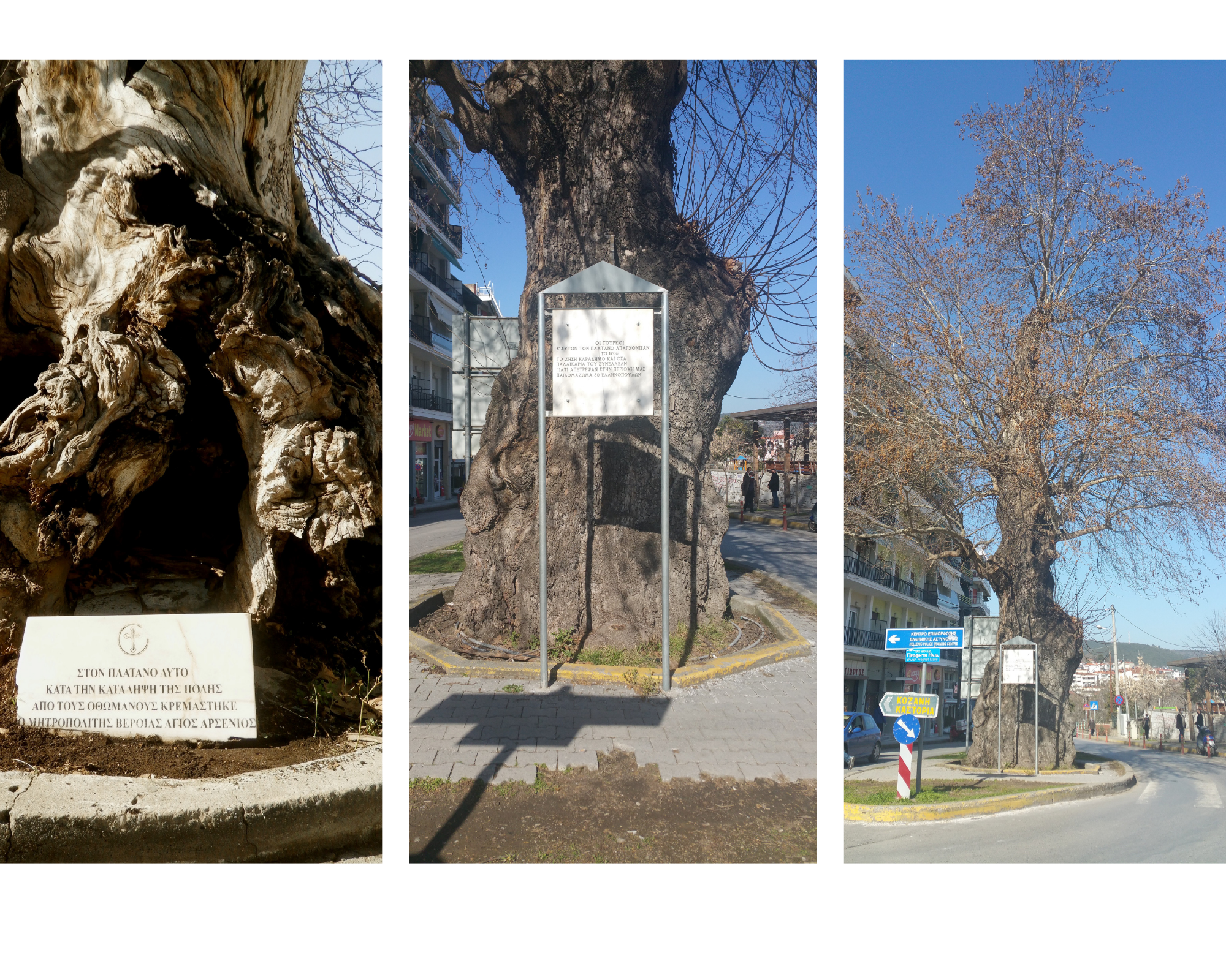 «Στο πρώτο, κρέμασαν οι Τούρκοι τον Ζήση Καραδήμο και τους γιους του Βασίλη και Δημήτρη, μετά από μάχη στην Αράπιτσα της Νάουσας, γεγονός για το οποίο υπάρχει ενημερωτική πινακίδα στο δένδρο. Επίσης, κάτω από το πλατάνι υποδέχτηκε ο βεροιώτικος λαός τον απελευθερωτή Ελληνικό Στρατό το 1912. Στον δεύτερο πλάτανο, όπου επίσης υπάρχει σχετική σήμανση, κρέμασαν τον Μητροπολίτη Αρσένιο κατά την κατάληψη της Βέροιας από τους Τούρκους», λέει ο κ. Μαντρατζής, διευκρινίζοντας ότι ως επίσημα αναγνωρισμένα Διατηρητέα Μνημεία Φύσης, στη διαχείρισή τους, προΐσταται το αρμόδιο Δασαρχείο, σε συνεργασία με το δήμο Βέροιας.