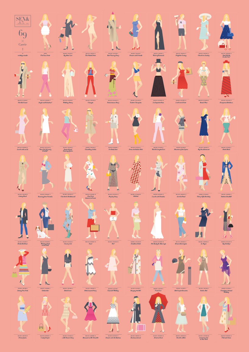 69 outfits της Carrie Bradshaw από το Sex and the City μαζεμένα σε μία αφίσα!