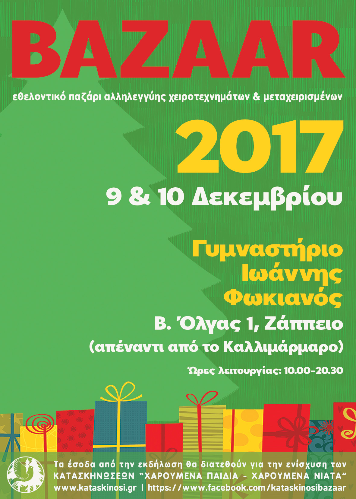 Επικοινωνήστε στα τηλέφωνα: 210 3226019, 6938 060 296 και στις ηλεκτρονικές διευθύνσεις: kataskinoseis@yahoo.com και bazaar.xpxn@gmail.com