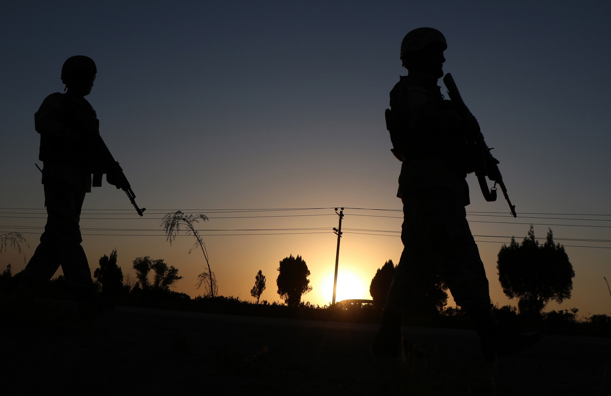 epa07919513 Afghan security officials patrol in Enjil district of Herat, Afghanistan, 14 October 2019. The government now controls less than 60 percent of Afghan territory amid gains for the Taliban, who governed the country for several years prior to the US invasion in October 2001. EPA/JALIL REZAYEE