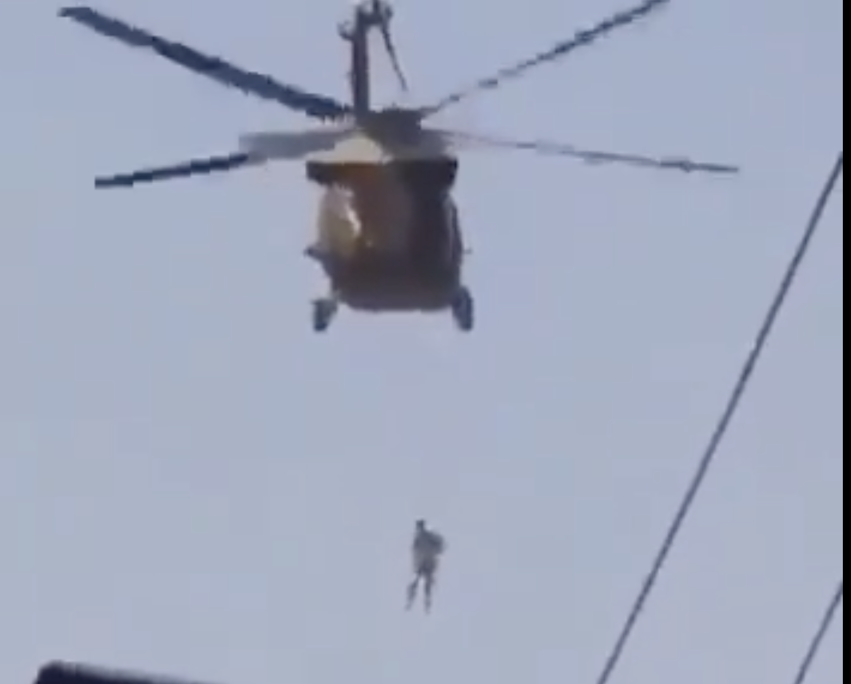 Σύμφωνα με το nypost.com, στα πλάνα φαίνεται ξεκάθαρα κάποιος να κρέμεται κάτω από το ελικόπτερο και να αιωρείται στον ουρανό. Ωστόσο, δεν είναι αμέσως σαφές πώς βρέθηκε εκεί ή αν είναι ζωντανός.