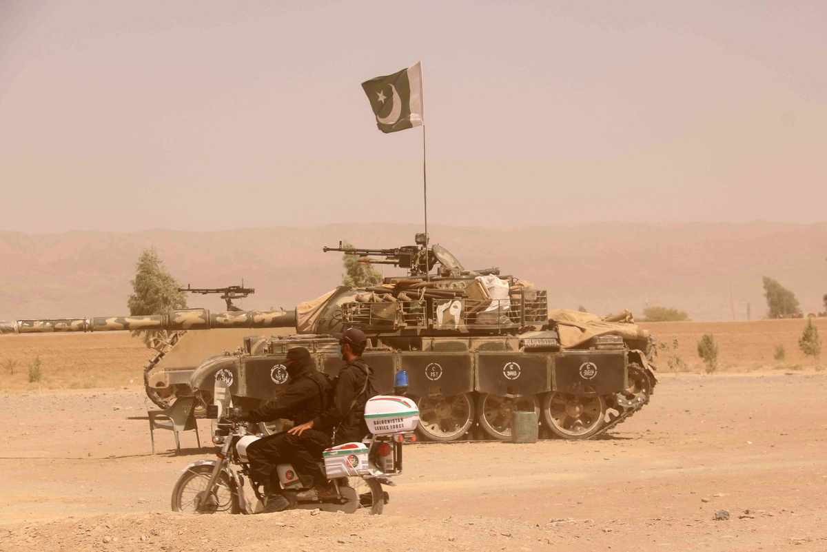 epa09411036 Pakistani security officials patrol at Pakistani-Afghan border as it was closed for the last several days at Chaman, Pakistan, 12 August 2021. Taliban's shadow governor for Kandahar province on 05 August issued a statement that announced the closing down of the border with Pakistan at Chaman, and said Islamabad should relax rules for crossing the frontier. EPA/AKHTER GULFAM