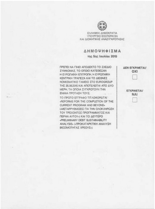 Το ερώτημα έχεις ως εξής: Πρέπει να γίνει αποδεκτό το σχέδιο συμφωνίας, το οποίο κατέθεσαν η Ευρωπαϊκή Επιτροπή, η Ευρωπαϊκή Κεντρική Τράπεζα και το Διεθνές Νομισματικό Ταμείο στο Eurogroup της 25.06.2015 και αποτελείται από δύο μέρη, τα οποία συγκροτούν την ενιαία πρότασή τους;