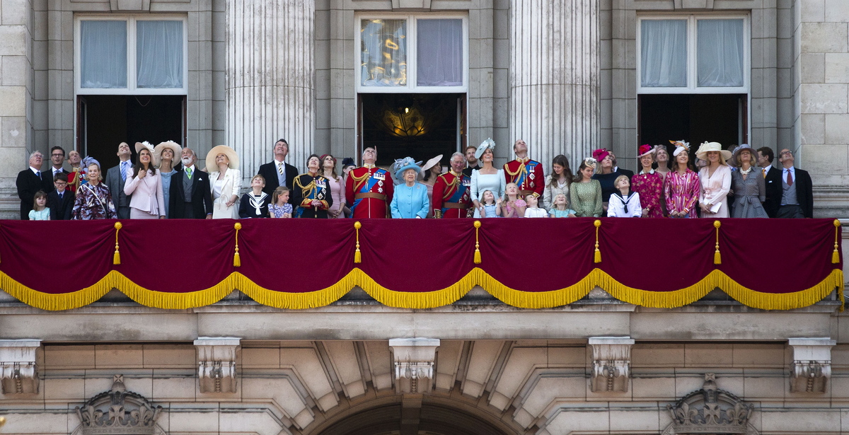 epa06796933 Britiain's Queen Elizabeth II (C) and members of the royal family watch the flypast on the balcony of Buckingham Palace during the Trooping of the Colour, the Queen's 92th birthday parade outside Buckingham Palace in London, Britain, 09 June 2018. The annual official Queen's Birthday Parade is more popularly known as Trooping the Colour when the Queen's Colour is 'Trooped' in front of Her Majesty and all the Royal Colonels. EPA/STRINGER