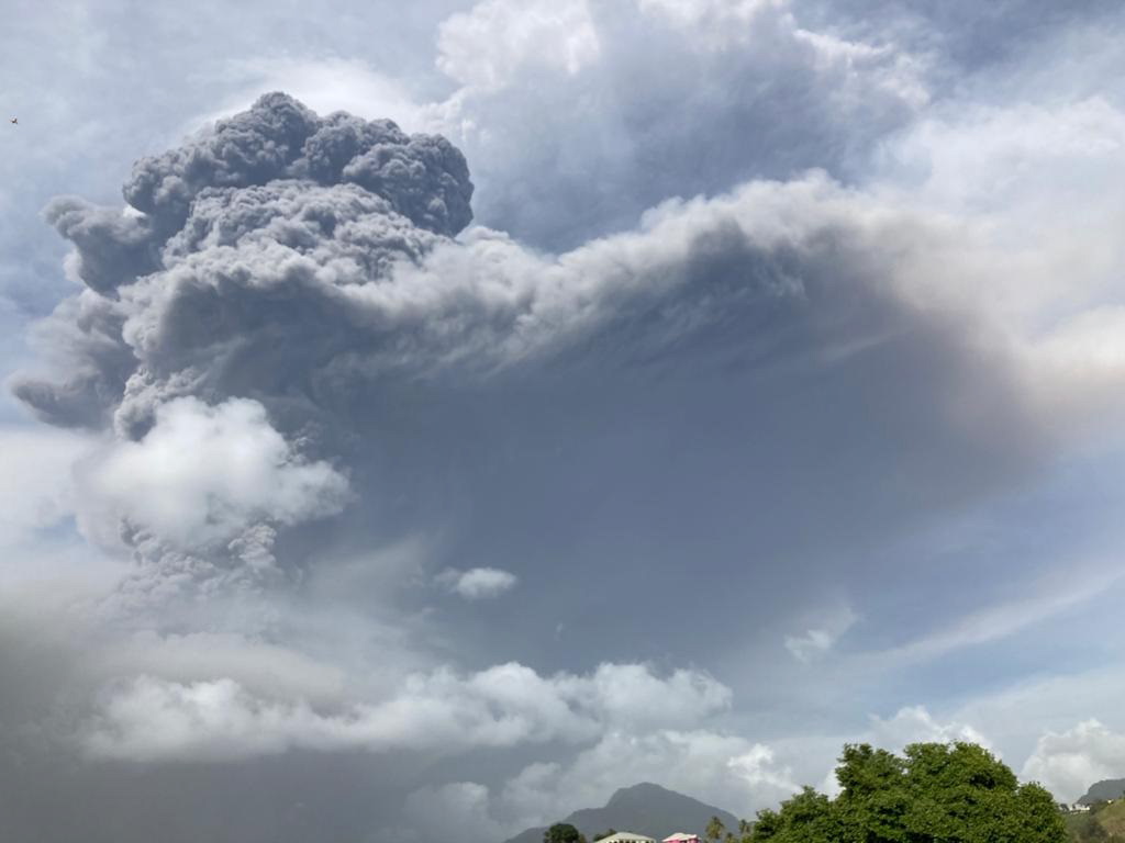 epa09125731 A handout photo made available by the Seismic Research of the University of the West Indies (UWI Seismic Research) taken from the observatory of the seismic stations where the smoke and ash released from the La Soufriere volcano can be seen in Saint Vincent and the Grenadines, 09 April 2021. The Soufriere volcano, located on the island of San Vicente, registered a second large eruption 09 April that caused a column of smoke and ash about 4 kilometers high visible in much of that area of the Caribbean, an explosion that according to experts could repeat itself over the next few hours and days. EPA/UWI Seismic Research HANDOUT ONLY AVAILABLE TO ILLUSTRATE THE ACCOMPANYING NEWS / MANDATORY CREDIT UWI Seismic Research HANDOUT EDITORIAL USE ONLY/NO SALES