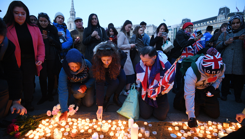 Αγρυπνία στην Πλατεία Τραφάλγκαρ στη μνήμη των θυμάτων της επίθεσης στο Λονδίνο
