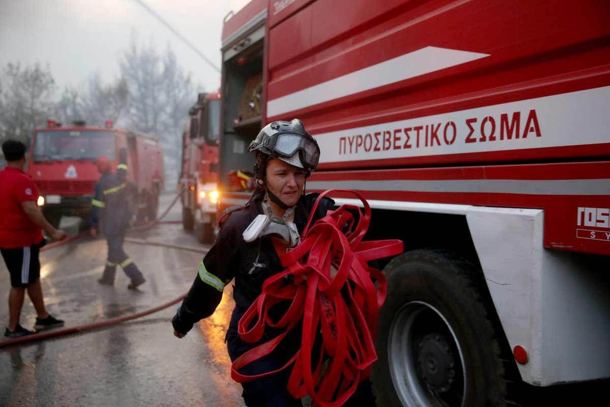 Πυροσβέστες ετοιμάζονται για να σβήσουν την φωτιά που ξέσπασε σε δασική έκταση στην περιοχή της Βαρυμπόμπης, Τρίτη 03 Αυγούστου 2021. Σε εξέλιξη είναι η πυρκαγιά σε δασική έκταση στην Βαρυμπόμπη, όπου οι ισχυρές πυροσβεστικές δυνάμεις δίνουν μάχη για να περιορίσουν την εξάπλωσή της, κυρίως με τα εναέρια μέσα που κάνουν συνεχώς ρίψεις νερού. Ταυτόχρονα η Πολιτική Προστασία έστειλε μήνυμα πριν από λίγο μέσω του ευρωπαϊκού αριθμού έκτακτης ανάγκης 112, στους κατοίκους της περιοχής να κλείσουν καμινάδες, πόρτες και παράθυρα για να μην μπουν καύτρες στα σπίτια τους. Υπενθυμίζεται ότι στο μέτωπο της πυρκαγιάς επιχειρούν 350 πυροσβέστες με 70 οχήματα, 10 ομάδες πεζοπόρων τμημάτων και από αέρος 4 ελικόπτερα και 4 αεροσκάφη μεταξύ των οποίων και το ρωσικό Beriev-200, ενώ συντονίζει ο αρχηγός του ΠΣ Στέφανος Κολοκούρης. Παράλληλα η Αστυνομία έχει διακόψει την κυκλοφορία λόγω της πυρκαγιάς στους δρόμους: Τατοΐου από Λ. Κύμης έως την οδό Ερυθραίας, στην Ερυθραίας από το ύψος της γέφυρας Βαρυμπόμπης και στην Τατοΐου από την οδό Πάρνηθος (Ιπποκράτειο Πολιτεία- ταβέρνα Λάμπρος). ΑΠΕ-ΜΠΕ/ΑΠΕ-ΜΠΕ/ΟΡΕΣΤΗΣ ΠΑΝ