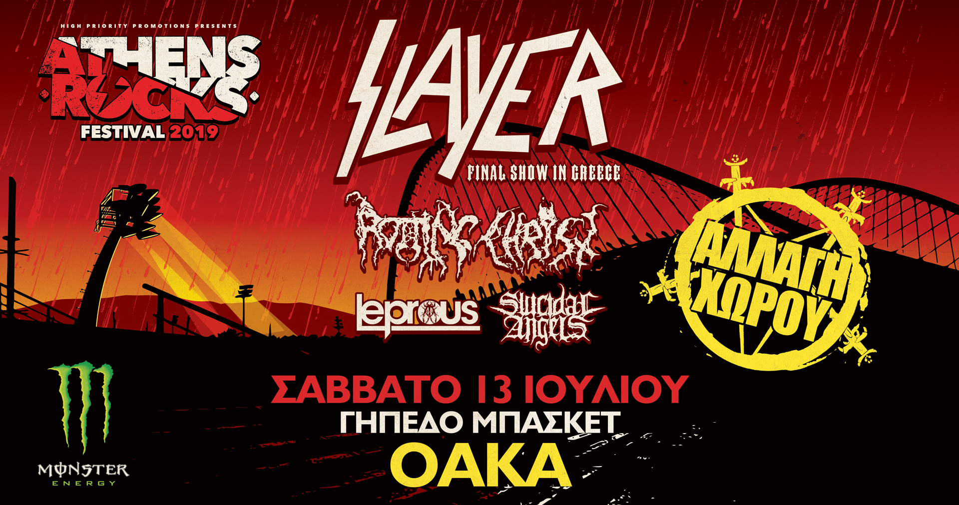 Θέλοντας να τιμήσουμε τους Slayer και τους Έλληνες φαν και λαμβάνοντας υπόψη τις απαιτήσεις μιας εμφάνισης τέτοιου μεγέθους, το AthensRocks μεταφέρεται στο Γήπεδο Μπάσκετ ΟΑΚΑ “Νίκος Γκάλης”.