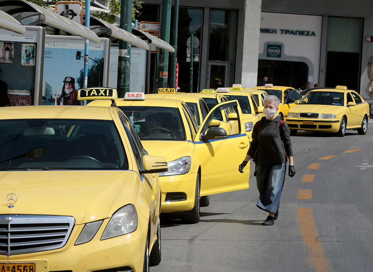 Γυναίκα εξω από ΤΑΞΙ στο κέντρο της Αθήνας φορώντας μάσκα και γάντια , Σάββατο 2 Μαΐου 2020. Από την Δευτέρα 4 Μαΐου θα είναι υποχρεωτική η χρήση μάσκας από τους επιβάτες στα μέσα μαζικής μεταφοράς και τα ταξί. ΑΠΕ-ΜΠΕ/ΑΠΕ-ΜΠΕ/Παντελής Σαίτας