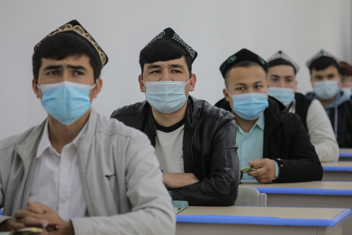 epa09154037 Ethnic minority students attend a class at the Urumqi Islamic Institution during a government-organized trip for foreign journalists, in Urumqi, western China's Xinjiang Uyghur Autonomous Region, 22 April 2021 (issued 23 April 2021). Founded in 1987, the Urumqi Islamic Institution counts 889 students and it is the only religious college in Xinjiang. Students aged between 18 and 25 study for three to five years, with about 70 percent of the curriculum comprising religious courses, including Arabic, Arabic literature, Koran recitation, Islamic law, and Islamic culture among others. UK lawmakers on 22 April 2021 passed a non-binding parliamentary motion declaring that China's policies against the Uyghur minority population in Xinjiang amounted to 'crimes against humanity and genocide'. China has denied all allegations of rights abuses being perpetrated in Xinjiang, calling them 'the lie of the century'. EPA/WU HONG