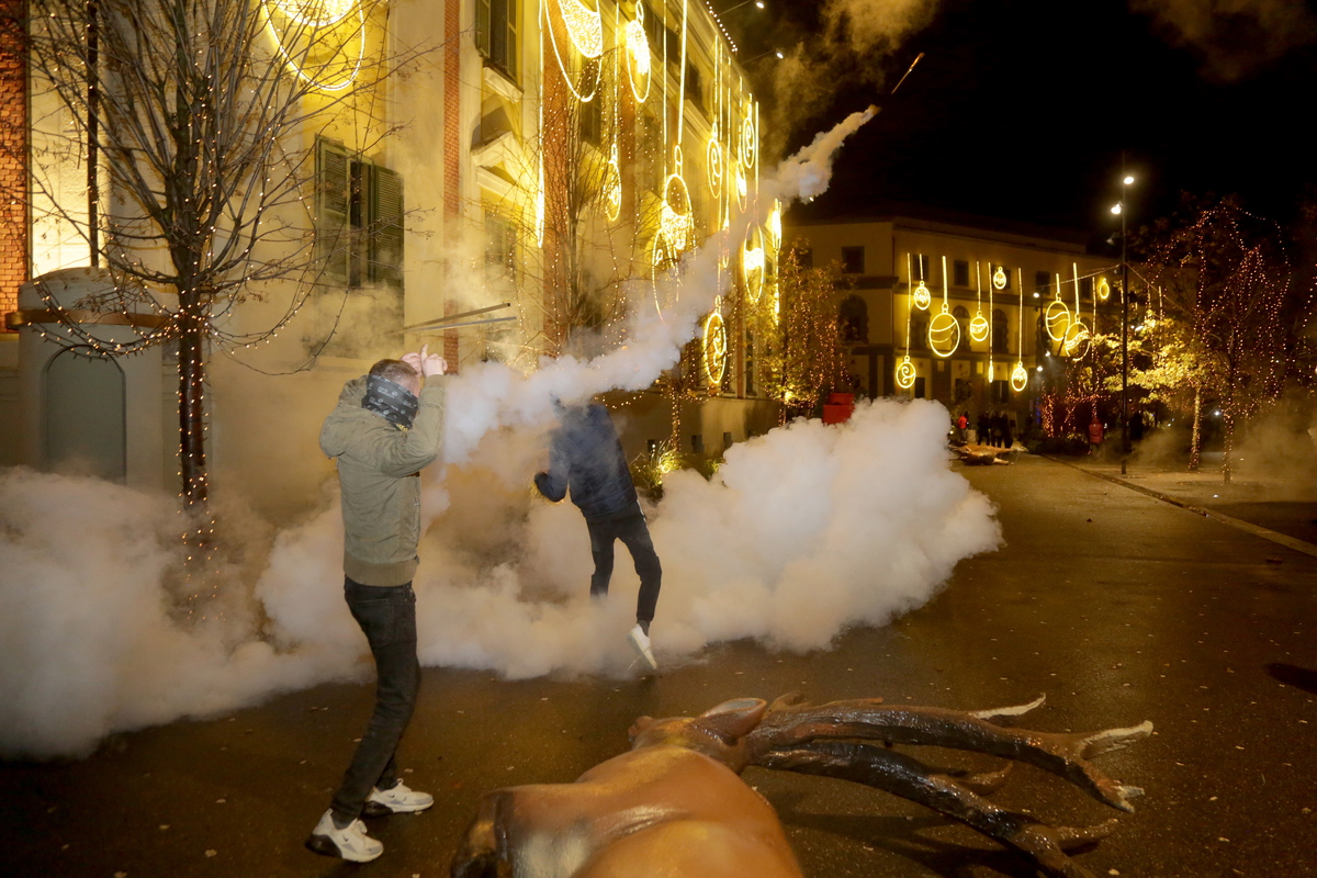 Αποκορύφωμα της έντασης ήταν η στιγμή που έβαλαν φωτιά στο χριστουγεννιάτικο δέντρο που είχε στηθεί στην πρωτεύουσα.