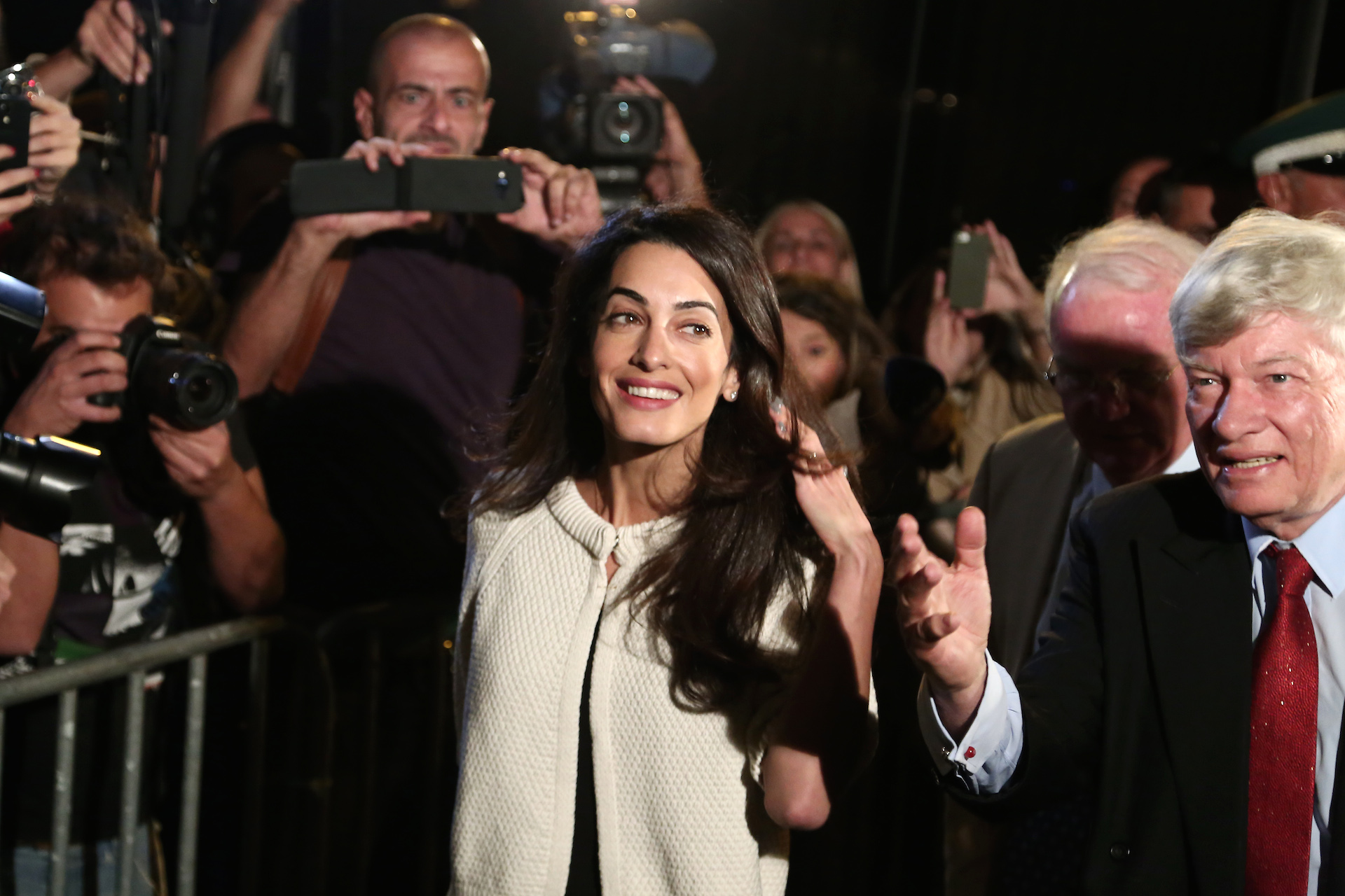Η Αμάλ Αλαμουντίν προσγειώθηκε στην Αθήνα στις 8.30 το απόγευμα και αμέσως κατευθύνθηκε στο ξενοδοχείο Μεγάλη Βρετανία όπου την περίμεναν δεκάδες φωτογράφοι και κάμερες τηλεοπτικών καναλιών. «Eίναι τιμή μου που με κάλεσε η ελληνική κυβέρνηση και που θα έχουμε αυτές τις συναντήσεις.Σας ευχαριστώ για το ζεστό καλωσόρισμα», ήταν η πρώτη της δήλωση.