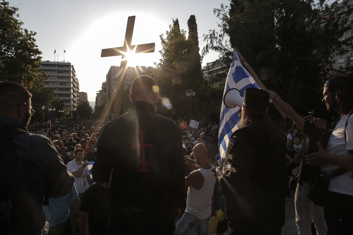 Χιλιάδες πολίτες συγκεντρώθηκαν χτες στην πλατεία Συντάγματος, κρατώντας ελληνικές σημαίες, σταυρούς και πλακάτ, ενώ φώναζαν συνθήματα κατά της υποχρεωτικής εφαρμογής του προγράμματος “Ελευθερία” σε επαγγελματικούς κλάδους, και του κοινωνικού διαχωρισμού αλλά και των εμβολίων, και φυσικά δίχως να τηρούν τα απαραίτητα μέτρα προστασίας κατά του κορονοϊού.