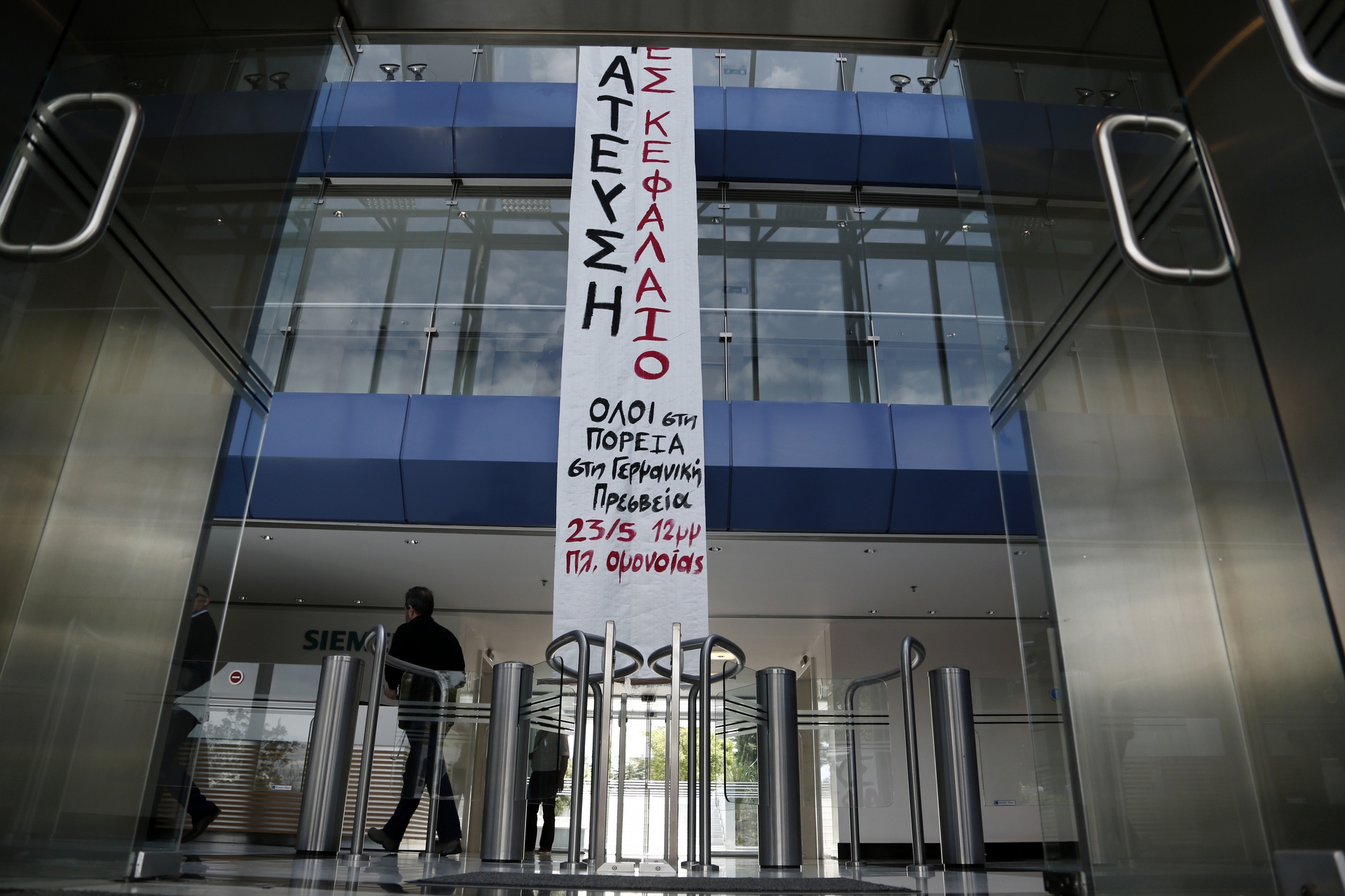 Συμβολική κατάληψη στα γραφεία της Siemens στο Μαρούσι πραγματοποίησαν το μεσημέρι της Δευτέρας αντιεξουσιαστές. Η ενέργεια αυτή αποτελεί προάγγελο της πορείας που προγραμματίζουν οι αντιεξουσιαστές στην γερμανική πρεσβεία το Σάββατο 23 Μαΐου. Στη Siemens έφτασαν αστυνομικές δυνάμεις, αλλά δεν έγινε κάποια επέμβαση. Σύμφωνα με την αστυνομία, οι καταληψίες έφταναν περίπου τους 30. Η κατάληψη έληξε μετά από περίπου δύο ώρες. Οι καταληψίες είχαν αναρτήσει πανό που έγραφε: «Καμία διαπραγμάτευση με το ντόπιο και διεθνές κεφάλαιο». Οι αντιεξουσιαστές απομάκρυναν ειρηνικά τους εργαζομένους της Siemens εκτός από το απαραίτητο προσωπικό ασφαλείας. Σε ανάρτησή τους στο Indymedia, οι αντιεξουσιαστές αναφέρουν ότι παρενέβησαν στα γραφεία της Siemens, «μιας πολυεθνικής γερμανικής εταιρείας, από τους κυριότερους στυλοβάτες του γερμανικού καπιταλισμού, και ένας από τους βασικότερους διαπλεκόμενους εταίρους των ντόπιων αστών». Λίγο αργότερα, ομάδα αντιεξουσιαστών πραγματοποίησε παρόμοια ενέργεια στην εταιρεία Ελλάκτωρ στη Νέα Κηφισιά.