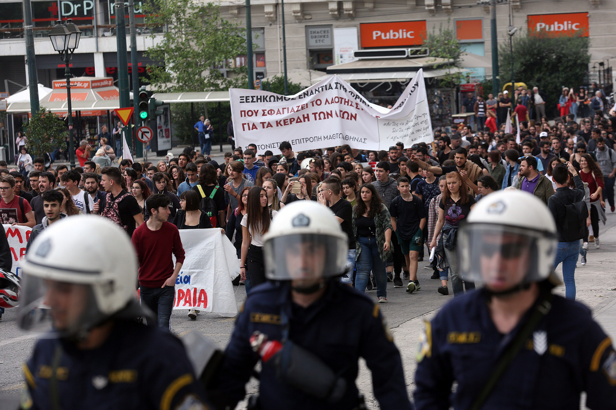 Μαθητές και φοιτητές παίρνουν μέρος στο αντιπολεμικό συλλαλητήριο ενάντια στην επέμβαση στη Συρία, στο κέντρο της Αθήνας, Δευτέρα 16 Απριλίου 2018. ΑΠΕ-ΜΠΕ /ΑΠΕ-ΜΠΕ/ ΟΡΕΣΤΗΣ ΠΑΝΑΓΙΩΤΟΥ