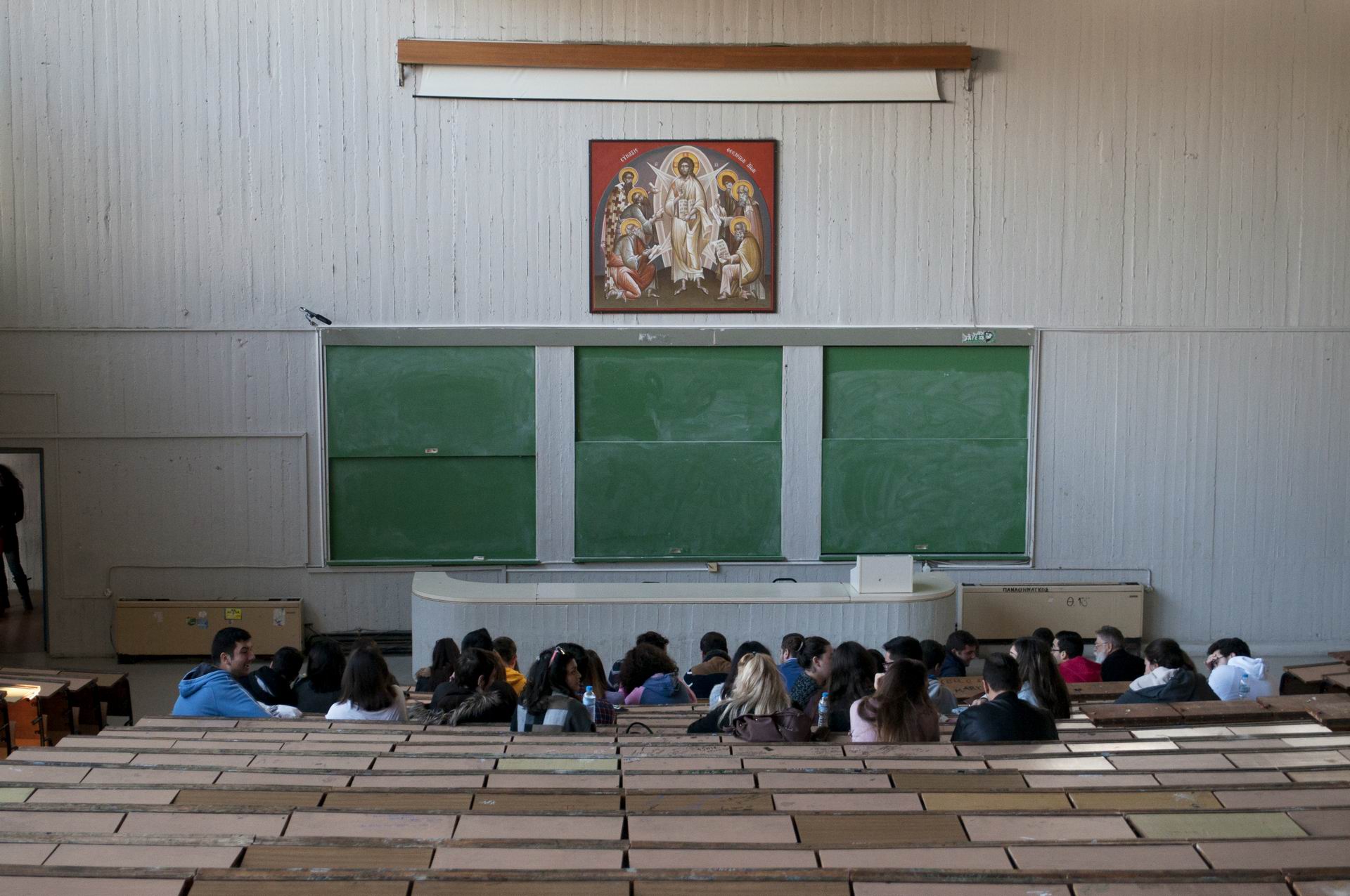 Το αμφιθέατρο της Θεολογικής Σχολής του Πανεπιστημίου Αθηνών, στην Πανεπιστημιούπολη Ζωγράφου. Νοέμβριος 2015. φώτο: Κατερίνα Σαμαρτζή