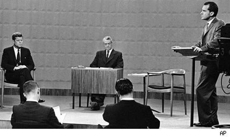 Το πρώτο debate στην ιστορία της τηλεοπτικής ανθρωπότητας έγινε στις 26 Σεπτεμβρίου του 1960. Ο Τζον Κένεντι αντιμετωπίζει τον Ρίτσαρντ Νίξον. Αν και ο δεύτερος ήταν επικρατέστερος για ν΄αναδειχθεί Πρόεδρος των Ηνωμένων Πολιτειών δεν τα κατάφερε τελικά να κερδίσει και πολλοί χρεώνουν την ήττα σε αυτή την τηλεοπτική αναμέτρηση. Ο Κένεντι, πιο νέος, πιο αφελής με αρκετά προχωρημένες ιδέες για το μέσο Αμερικάνο, χρησιμοποίησε υπέρ του τους όρους της επικοινωνίας και κέρδισε της εντυπώσεις. Αντίθετα, ο δεινός ρήτορας Ρίτσαρντ Νίξον υπέπεσε σε πολλά λάθη. Επέλεξε να μη βάλει make up οπότε φαινόταν χλωμός, άρρωστος και ιδρωμένος στο γυαλί. Επίσης φόρεσε ασορτί χρώμα σακάκι με το φόντο του στούντιο με αποτέλεσμα να χτυπάει άσχημα το μάτι.Η νίκη του Κένεντι και ο ρόλος του debate σε αυτή, το ανήγαγε στο πιο εμπορικό προϊόν που είχε να επιδείξει η αμερικάνικη τηλεόραση σε περίοδο εκλογών.