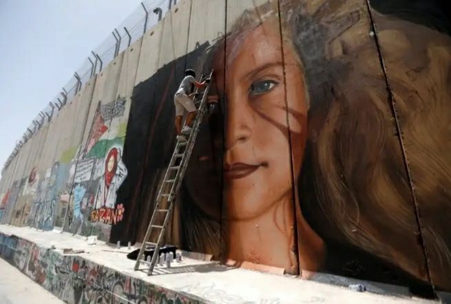 Οι συμπατριώτες της θα την υποδεχτούν με ένα τεράστιο γκράφιτι που απεικονίζει την ίδια, στη Βηθλεέμ, στο τείχος που χωρίζει τη Λωρίδα της Γάζας.