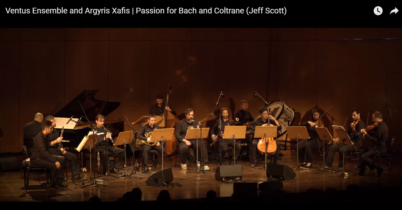 Το Passion for Bach and Coltrane του Jeff Scott είναι ένα έργο γραμμένο για κουιντέτο ξύλινων πνευστών, κουαρτέτο εγχόρδων, τρίο τζαζ και αφηγητή και είναι εμπνευσμένο από την ποίηση του Alfred Bennett (A.B.) Spellman [Άλφρεντ Μπέννετ (Έι Μπι) Σπέλμαν] και ειδικότερα από τη συλλογή Things I Must Have Known. Η ποίηση του επίσης αφροαμερικανού λογοτέχνη αναφέρεται στη μουσική μεγαλοφυία των Γιόχαν Σεμπάστιαν Μπαχ, Τζον Κολτρέιν και Γκονσάλο Ρουμπαλκάμπα καθώς και στη θρησκεία και τη θνητότητα.