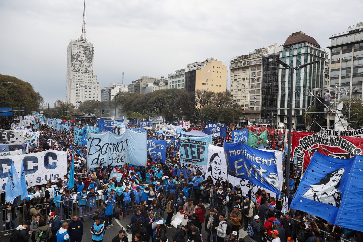 Εργατικά συνδικάτα και κοινωνικές οργανώσεις έκαναν πορεία και έκλεισαν δρόμους στο κέντρο του Μπουένος Άιρες την Τετάρτη, καθώς εντείνονται οι κινητοποιήσεις εναντίον των μέτρων λιτότητας που προωθεί η κυβέρνηση του προέδρου Μαουρίσιο Μάκρι στο πλαίσιο της συμφωνίας της Αργεντινής με το Διεθνές Νομισματικό Ταμείο, με στόχο να μειωθεί το κρατικό χρέος της τρίτης μεγαλύτερης οικονομίας της Λατινικής Αμερικής.