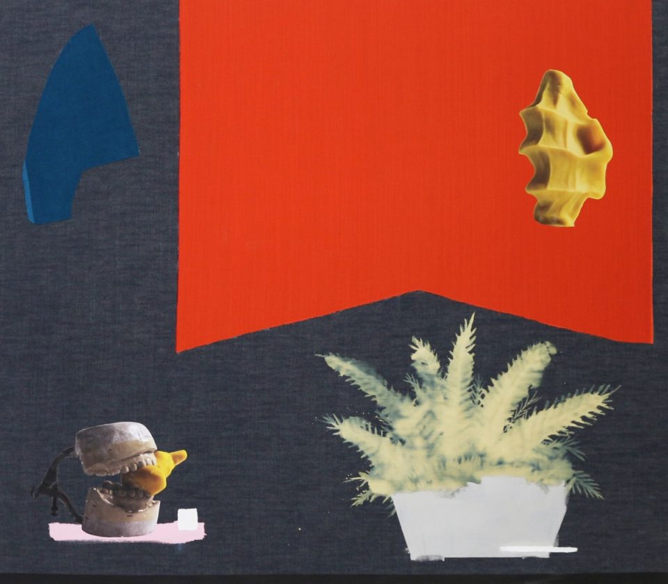 Anestis Ioannou, MRI Thoughts, 2020, acrylics, textile and collage on bleached denim, 160×140 cm