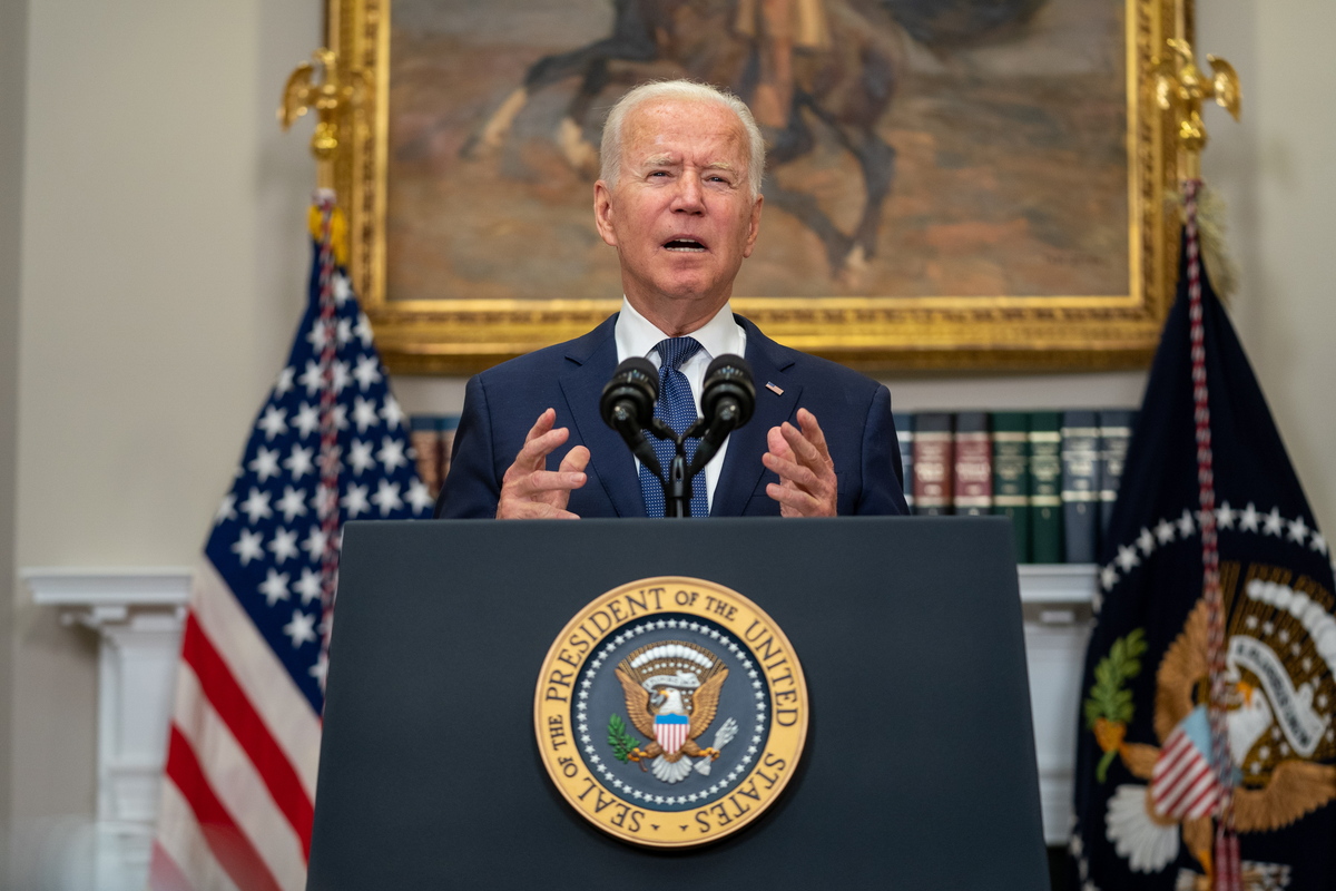 epa09425495 US President Joe Biden gives updates on his Administration's response to Hurricane Henri, as well as an update on the evacuation of American citizens, SIV applicants and their families, and vulnerable Afghans, in the Roosevelt room of the White House in Washington, DC, USA, 22 August 2021. EPA/Ken Cedeno / POOL