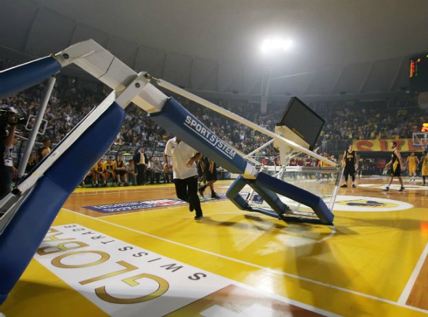 Διακοπή στο 21ο λεπτό του ματς μεταξύ του Άρη και της ΑΕΚ για το Κύπελλο Ελλάδος μπάσκετ, καθώς ο Τζαμέλ Χάγκινς «γκρέμισε» κυριολεκτικά την μπασκέτα στο Αλεξάνδρειο με το εντυπωσιακό του κάρφωμα. Σκηνές που παραπέμπουν ευθέως στον… Σακίλ Ο’ Νιλ και το ΝΒΑ ζήσανε όσοι βρίσκονται αυτή τη στιγμή στο “Nick Gallis Hall” ή όσοι βλέπουνε από την τηλεόραση τον αγώνα ανάμεσα στον Άρη και την ΑΕΚ: στο 21ο λεπτό της αναμέτρησης ο Γουότερς «ύψωσε» για τον Χάγκινς και ο 24χρονος σέντερ της ομάδας του Πρίφτη κυριολεκτικά διέλυσε την μπασκέτα που απλά παρέδωσε πνεύμα! Περίπου μετά τις 21:40 (το ματς άρχισε 19:30), άρχισε ξανά ο αγώνας αφού άλλαξε το ταμπλό.