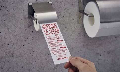 Έτσι δίπλα στο χαρτί υγιεινής, υπάρχει ένα μίνι ρολό γραμμένο στα αγγλικά με την ένδειξη «welcome to Japan» και οδηγίες για να καθαρίσει ο χρήστης την επιφάνεια του κινητού του.
