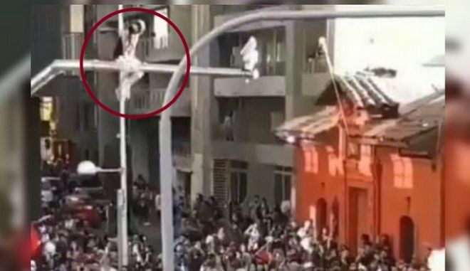 Σαν να ήταν ροκ σταρ χειροκρότησαν οι διαδηλωτές στη Χιλή μια κοπέλα που ανέβηκε σε στύλο και απενεργοποίησε μια κάμερα παρακολούθησης.